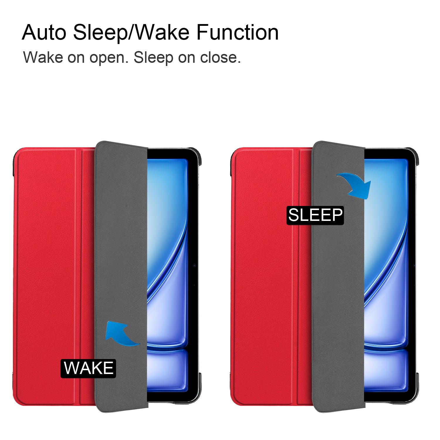 For iPad Air 13 (2024) Case Auto Wake / Sleep Tri-fold Stand Leather Tablet Cover - Red