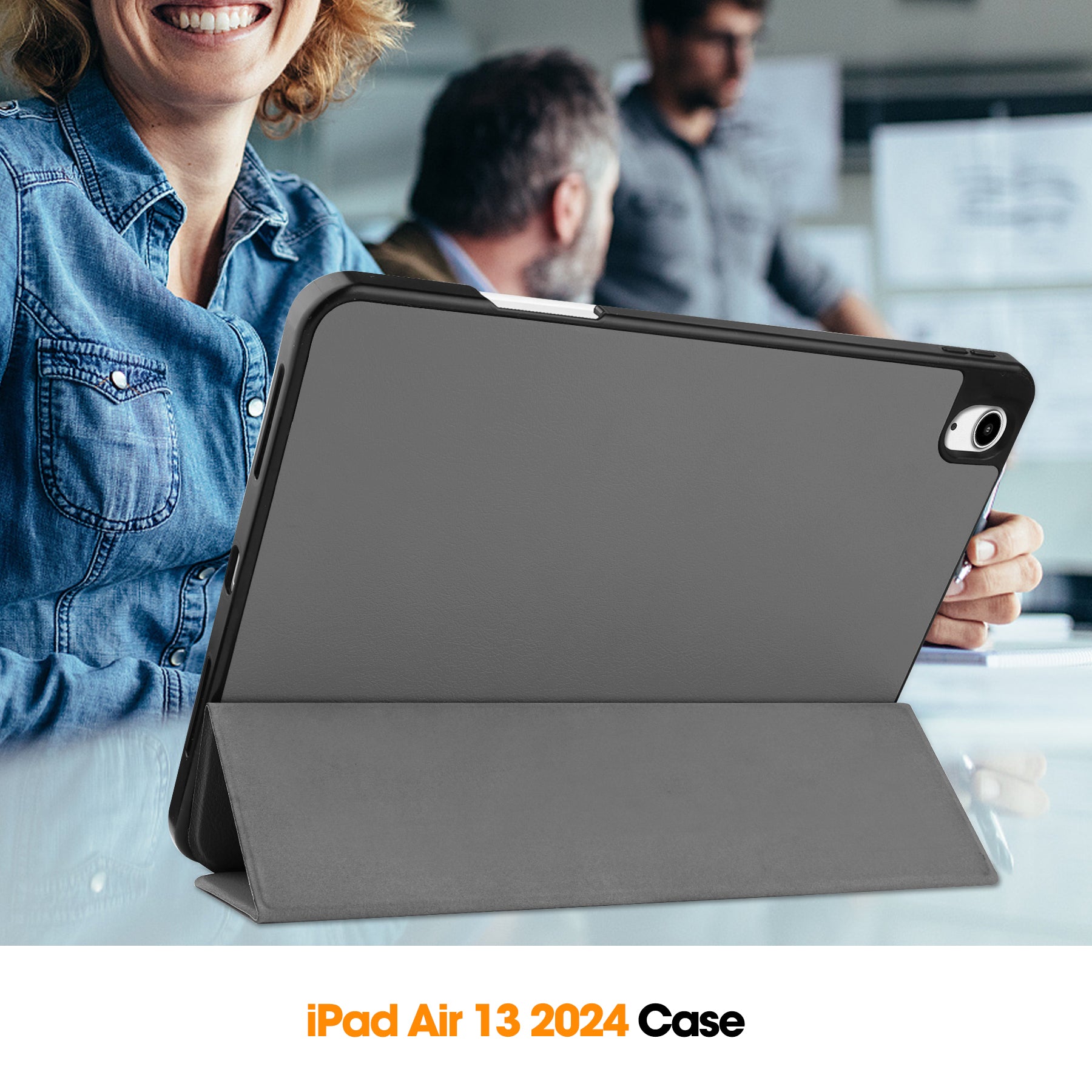 For iPad Air 13 (2024) Leather Case Tri-fold Stand Tablet Cover with Pen Slot - Grey