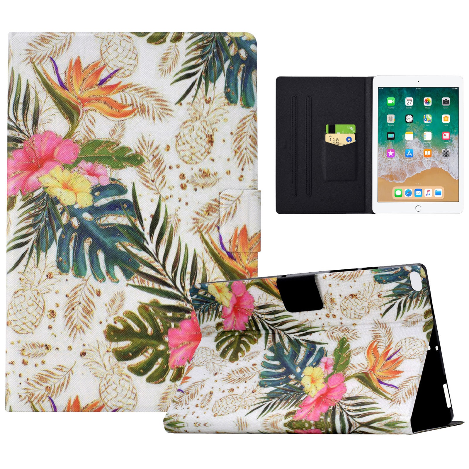 For iPad Air (2013) / iPad Air 2 / iPad 9.7-inch (2017) / (2018) Case PU Leather Pattern Folio Stand Protective Shell Cover - Golden Pineapple