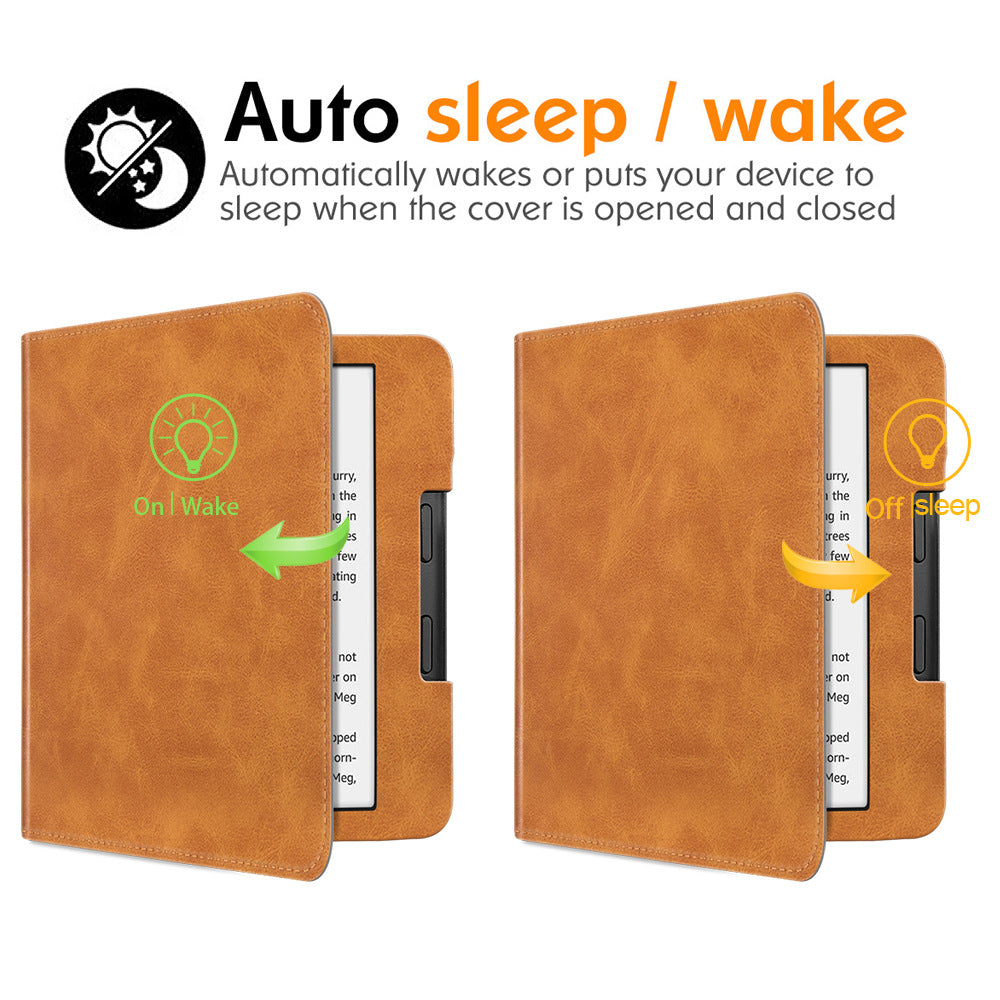 For Kobo Libra 2 N418 Tablet Case Auto Wake / Sleep PU Leather E-Reader Cover with Hand Strap, Kickstand - Blue