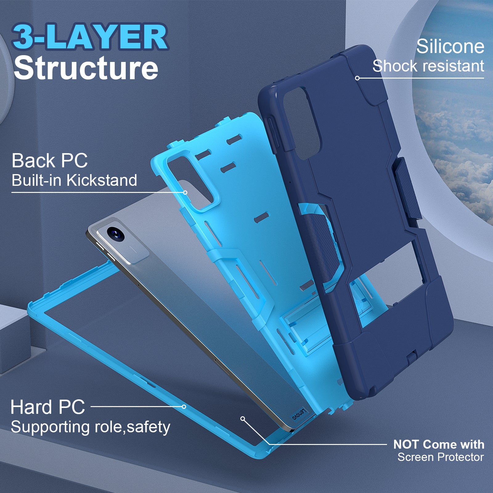 For Lenovo Tab M11 TB330FU / TB330XU Case Robot Style Silicone + PC Kickstand Tablet Cover - Navy Blue / Blue