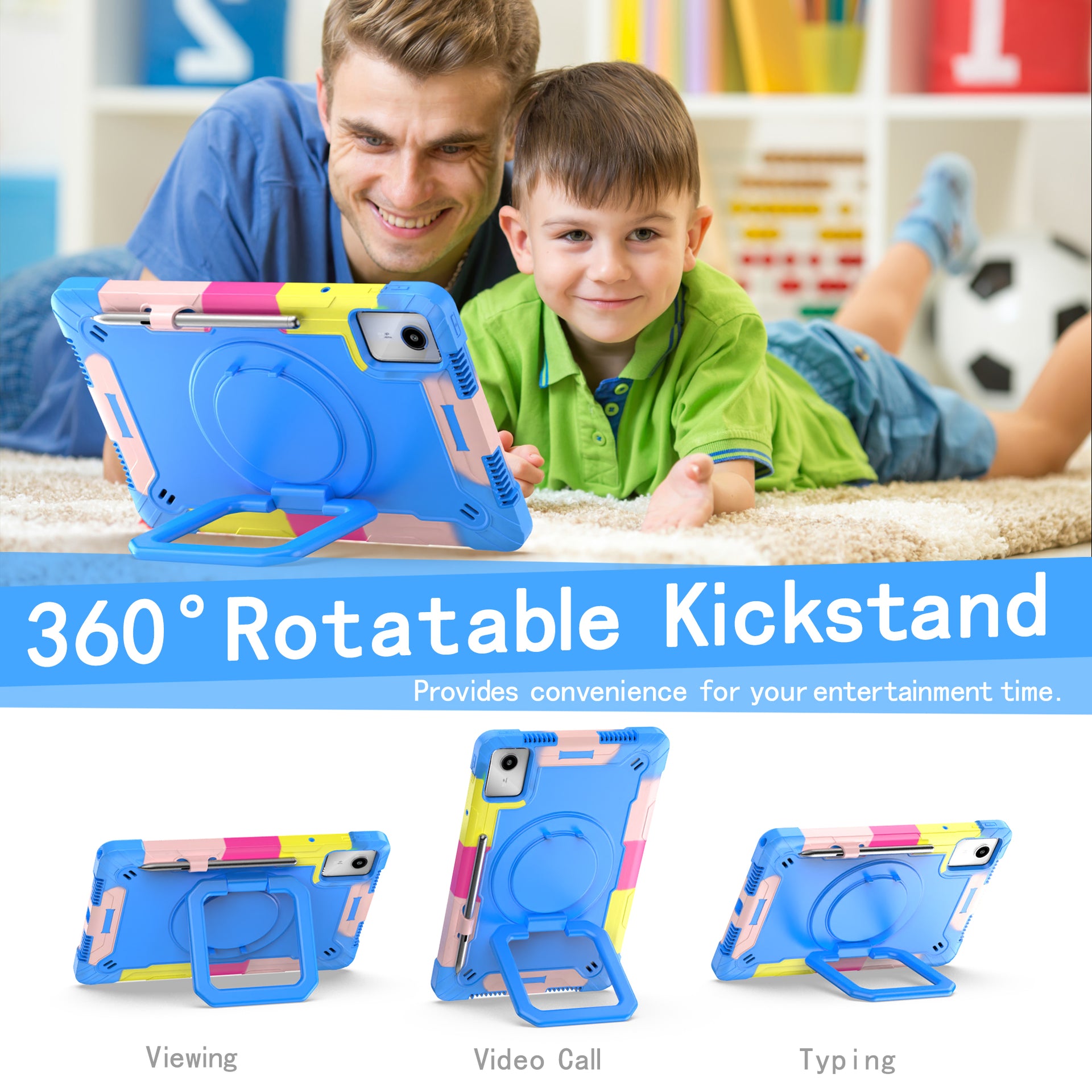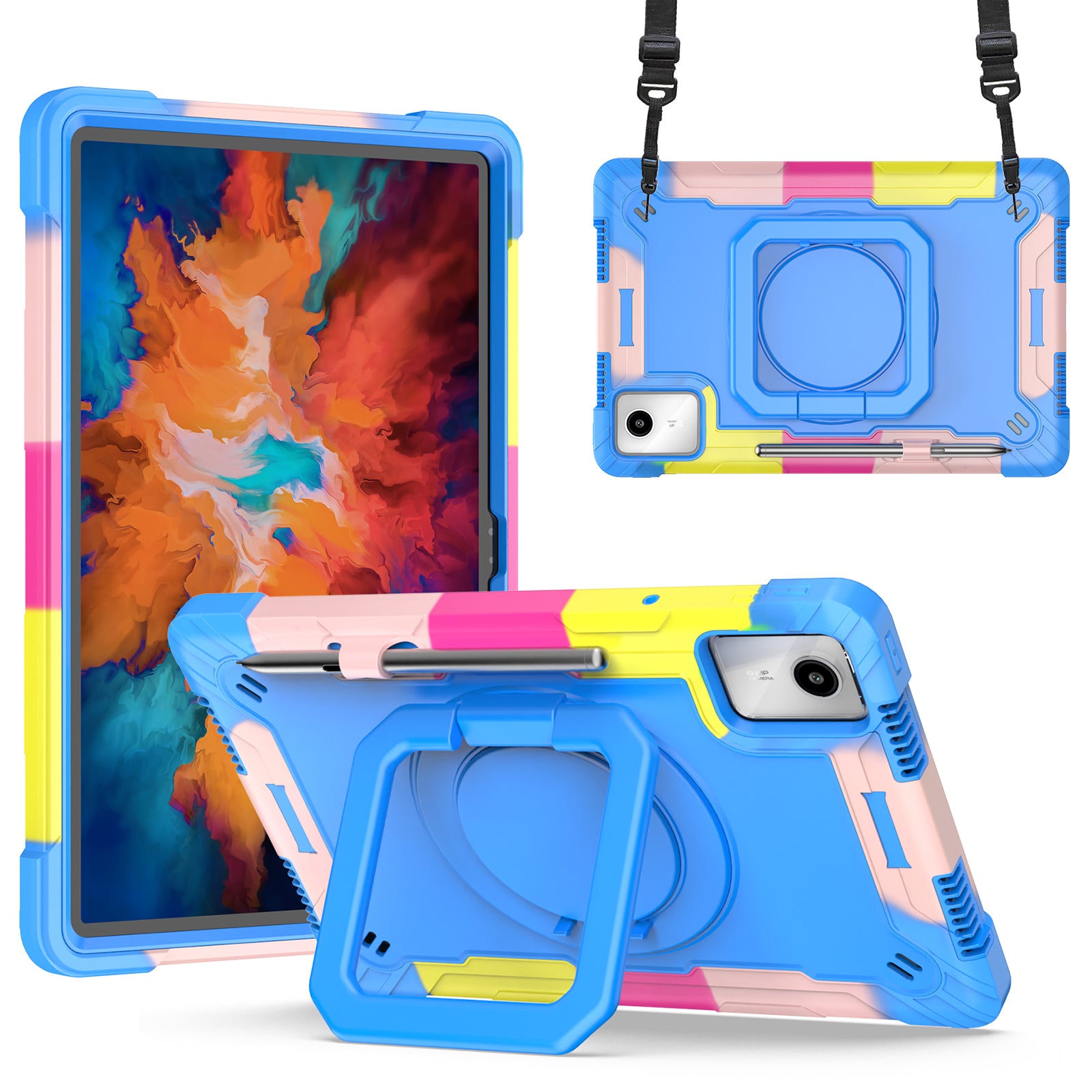For Lenovo Tab M11 / Xiaoxin Pad 11 2024 Case Protective Kickstand Tablet Cover with Shoulder Strap - Camo Blue