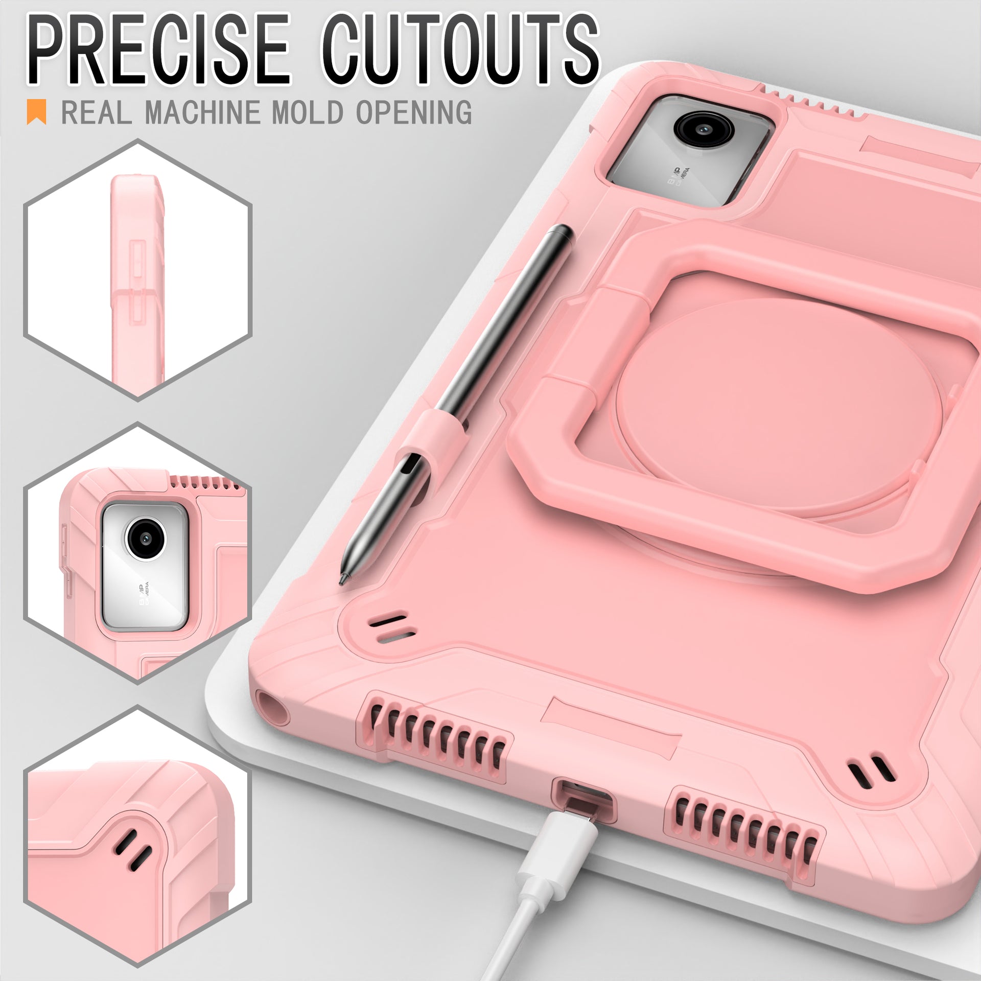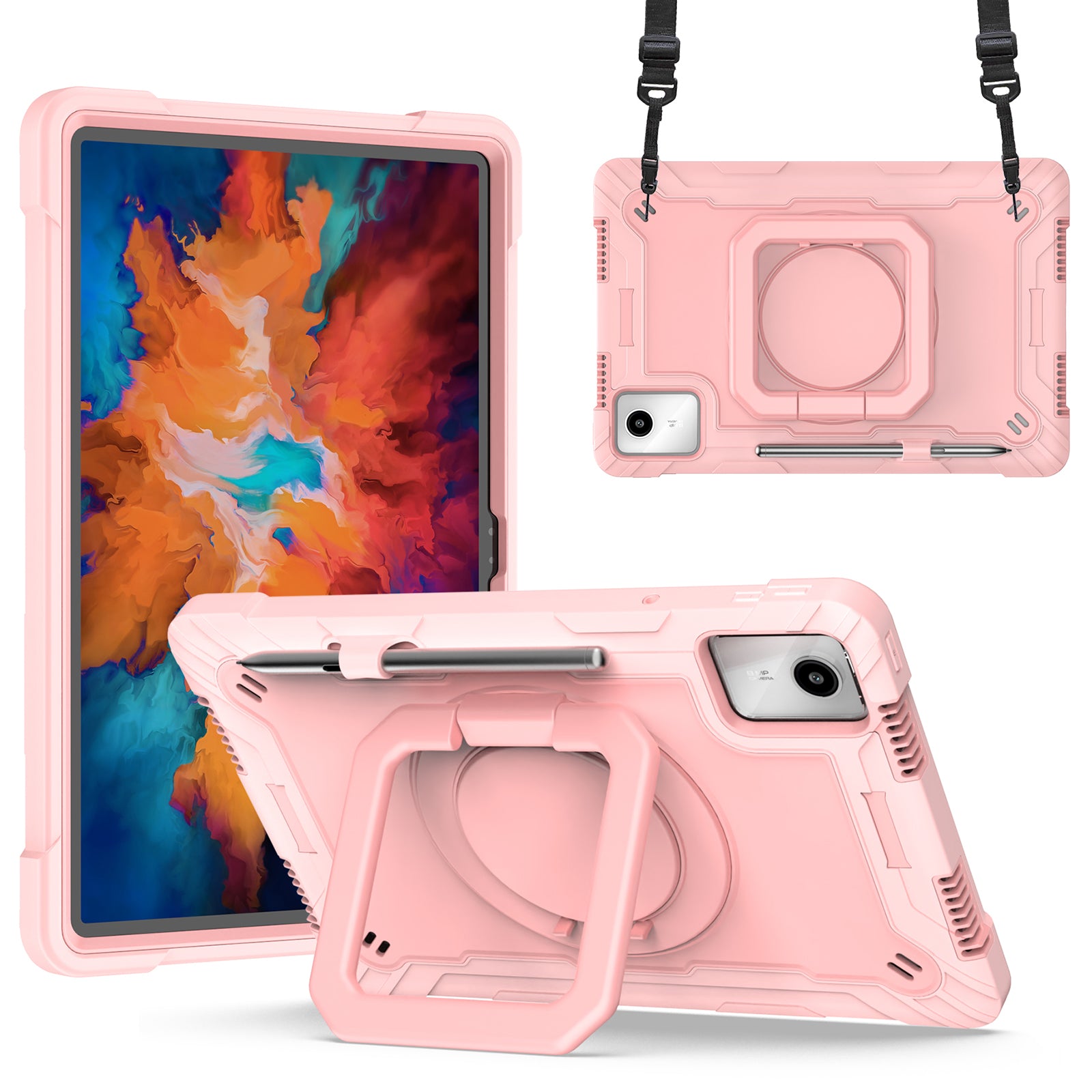 For Lenovo Tab M11 / Xiaoxin Pad 11 2024 Case Protective Kickstand Tablet Cover with Shoulder Strap - Rose Gold