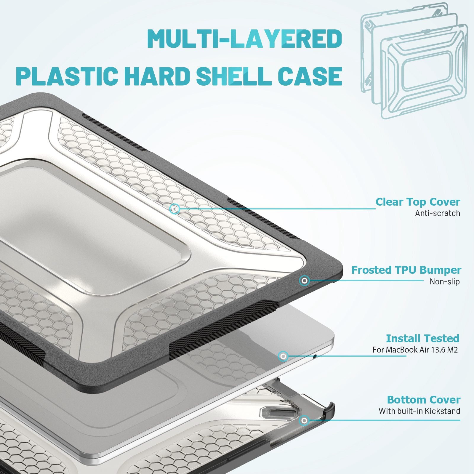 For MacBook Air 13 inch (2022) (M2 A2681) Protective Case Anti-Scratch Laptop Hard PC Case with Kickstand - Black