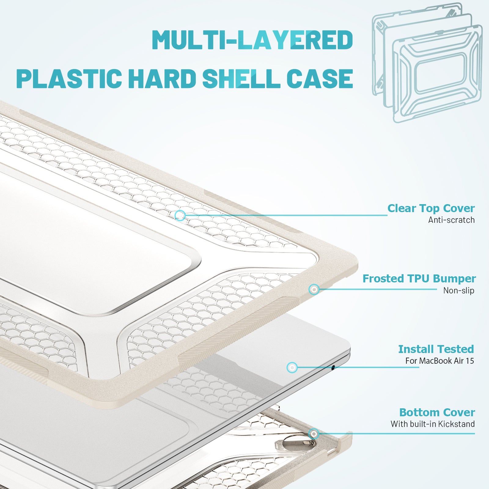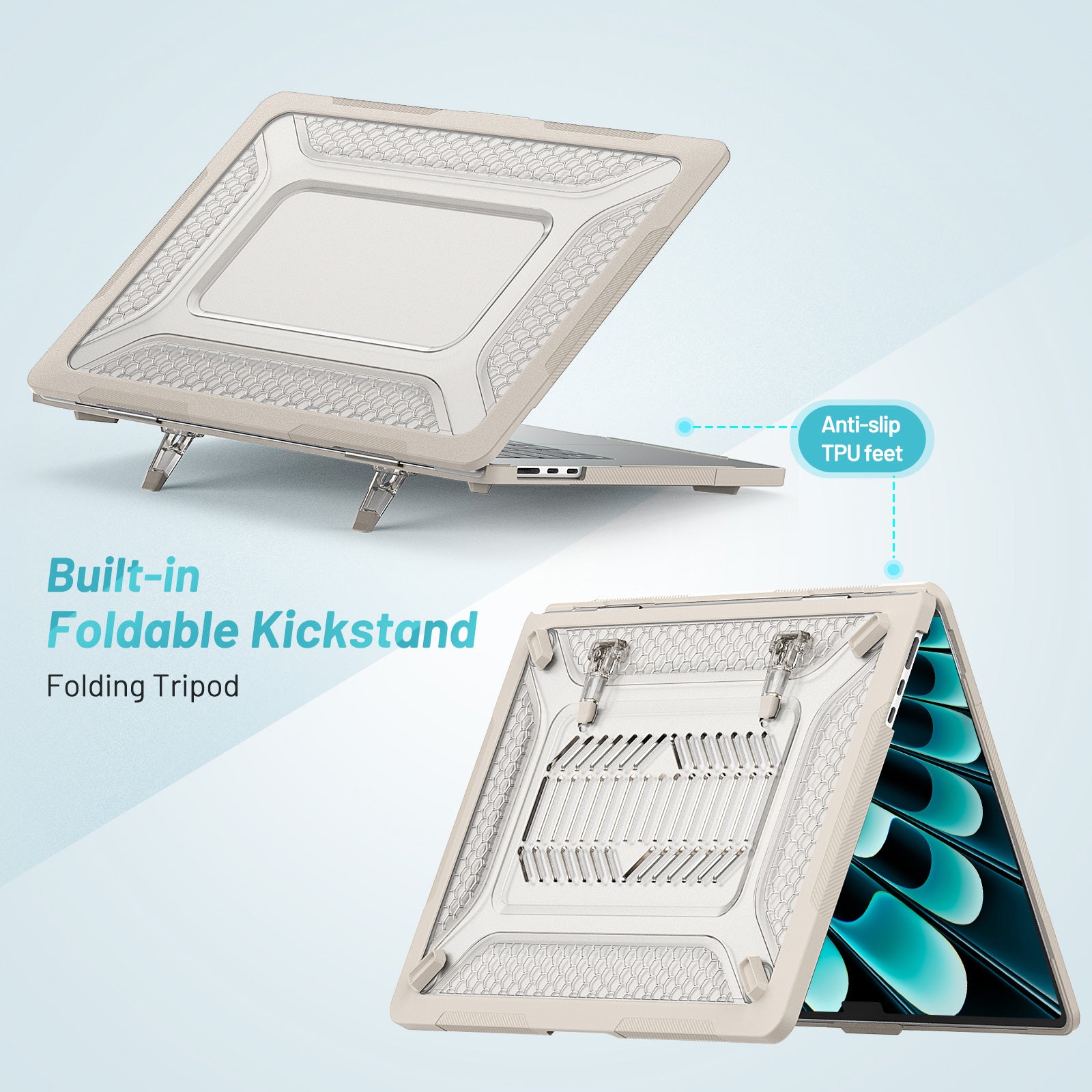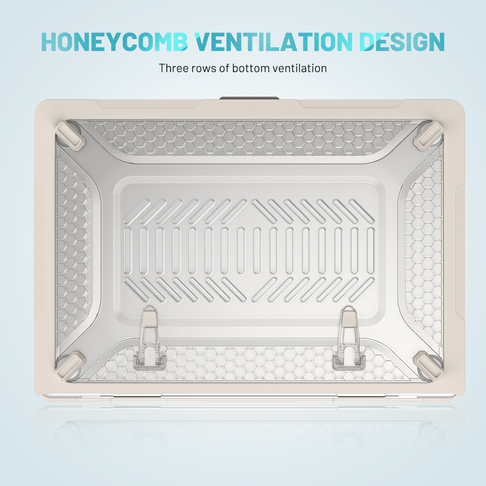 For Macbook Air 15 inch (2023) M2 A2941 Anti-slip Laptop Case Honeycomb Heat Dissipation Kickstand PC+TPU Cover - Apricot