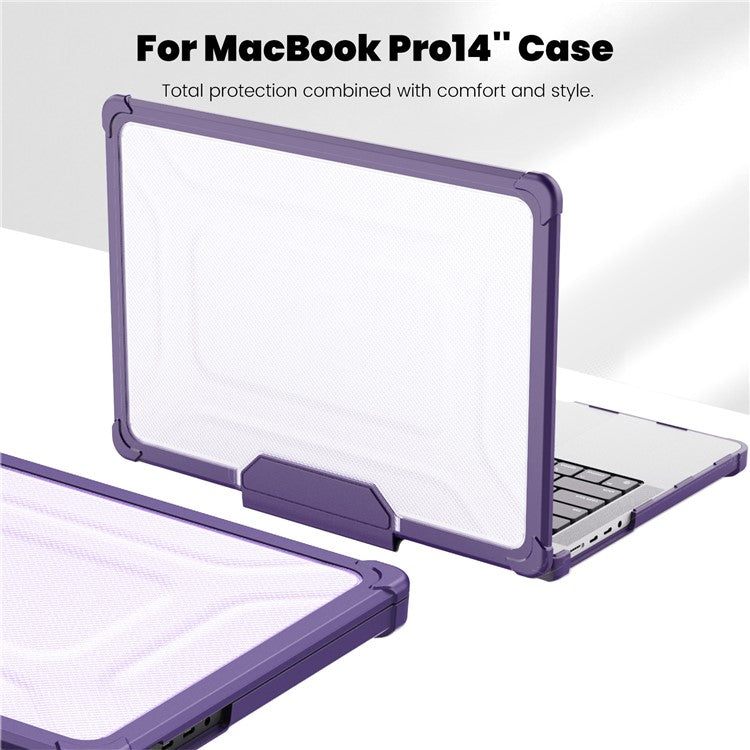 For MacBook Pro 14 inch (2024) (2021) / (2023) (A2442 M1 Pro / M1 Max / A2779) Heat Dissipation Hard PC+TPU Laptop Case with Kickstand - Purple