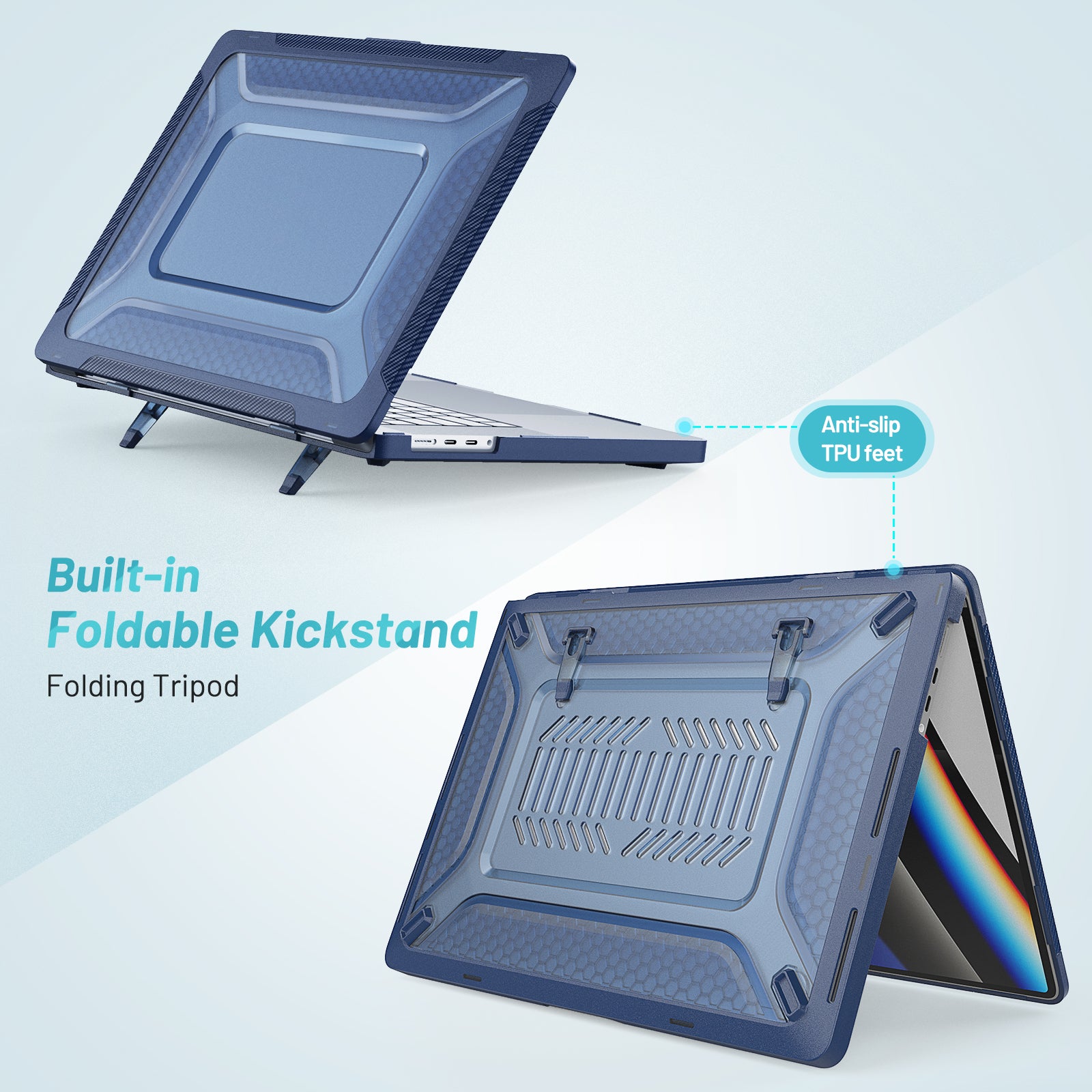For MacBook Pro 16 inch (2021) A2485 M1 Pro / M1 Max Kickstand Shockproof Laptop Case Hard PC Soft TPU Protective Cover - Sapphire