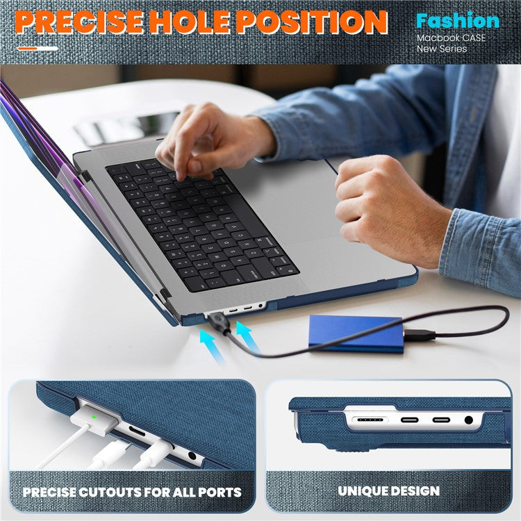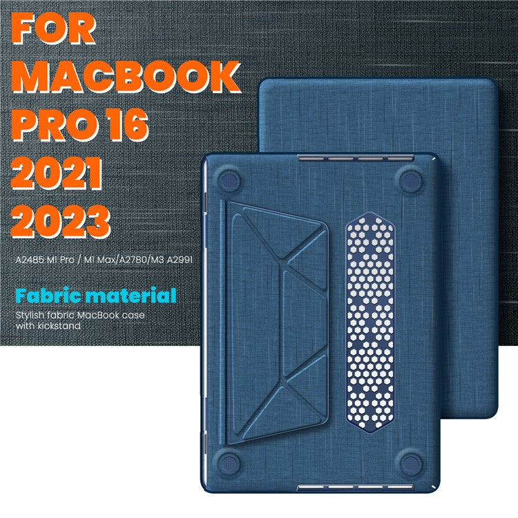 For MacBook Pro 16 inch (2024) / (2023) / (2021) A2485 M1 Pro  /  M1 Max / A2780 / M3 A2991 Laptop Case Anti-Slip PC+Cloth Flip Cover - Black