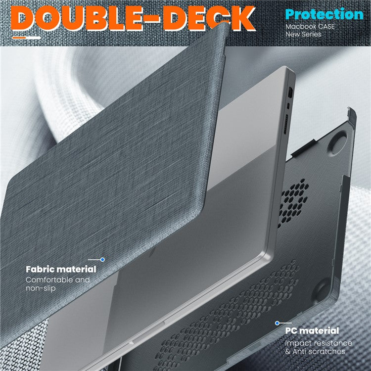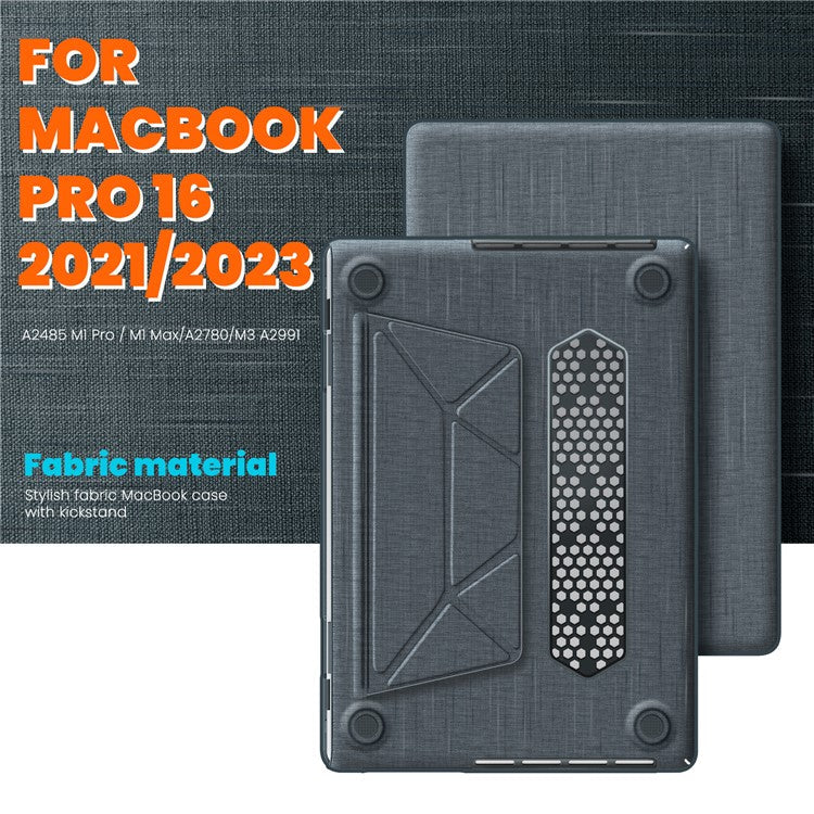 For MacBook Pro 16 inch (2024) / (2023) / (2021) A2485 M1 Pro / M1 Max / A2780 / M3 A2991 Laptop Case Anti-Slip PC+Cloth Flip Cover - Grey