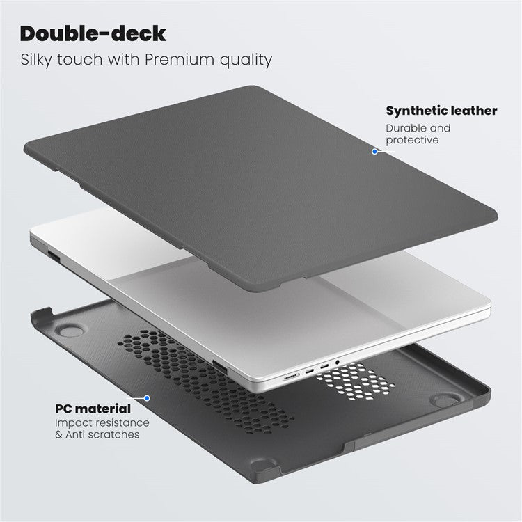 For MacBook Pro 16 inch (2024) / (2023) / (2021) A2485 M1 Pro / M1 Max / A2780 / M3 A2991 Laptop Case Anti-Slip PC+PU Leather Flip Cover - Grey