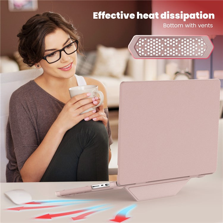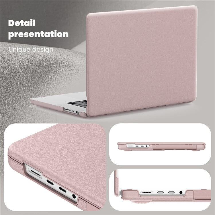 For MacBook Pro 16 inch (2024) / (2023) / (2021) A2485 M1 Pro / M1 Max / A2780 / M3 A2991 Laptop Case Anti-Slip PC+PU Leather Flip Cover - Pink