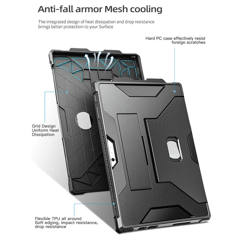 For Microsoft Surface Pro 4 / 5 / 6 / 7 Hard PC TPU Case Portable Carrying Case with Pencil Holder - Black
