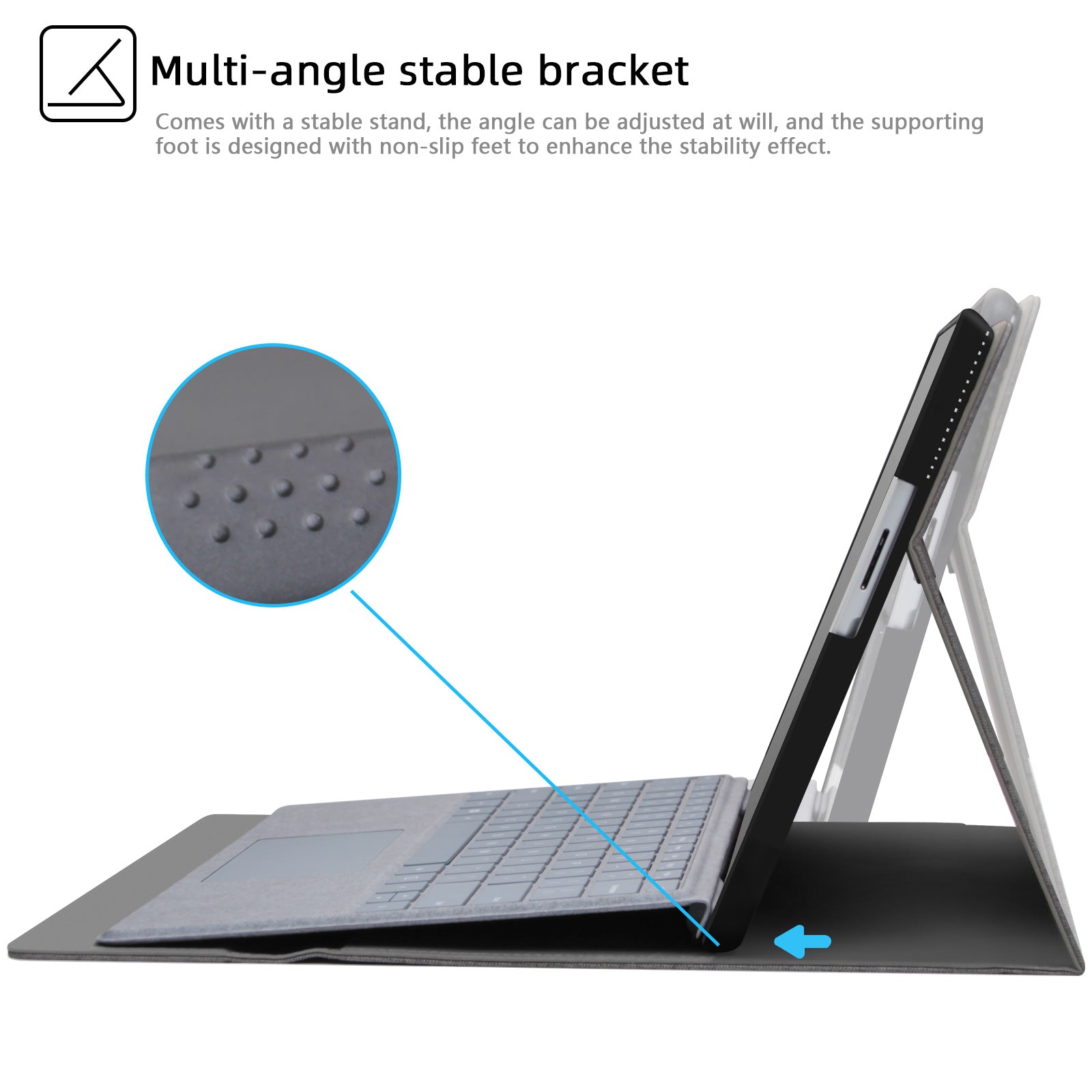 - Adjustable stand provides a comfortable angle for viewing and typing