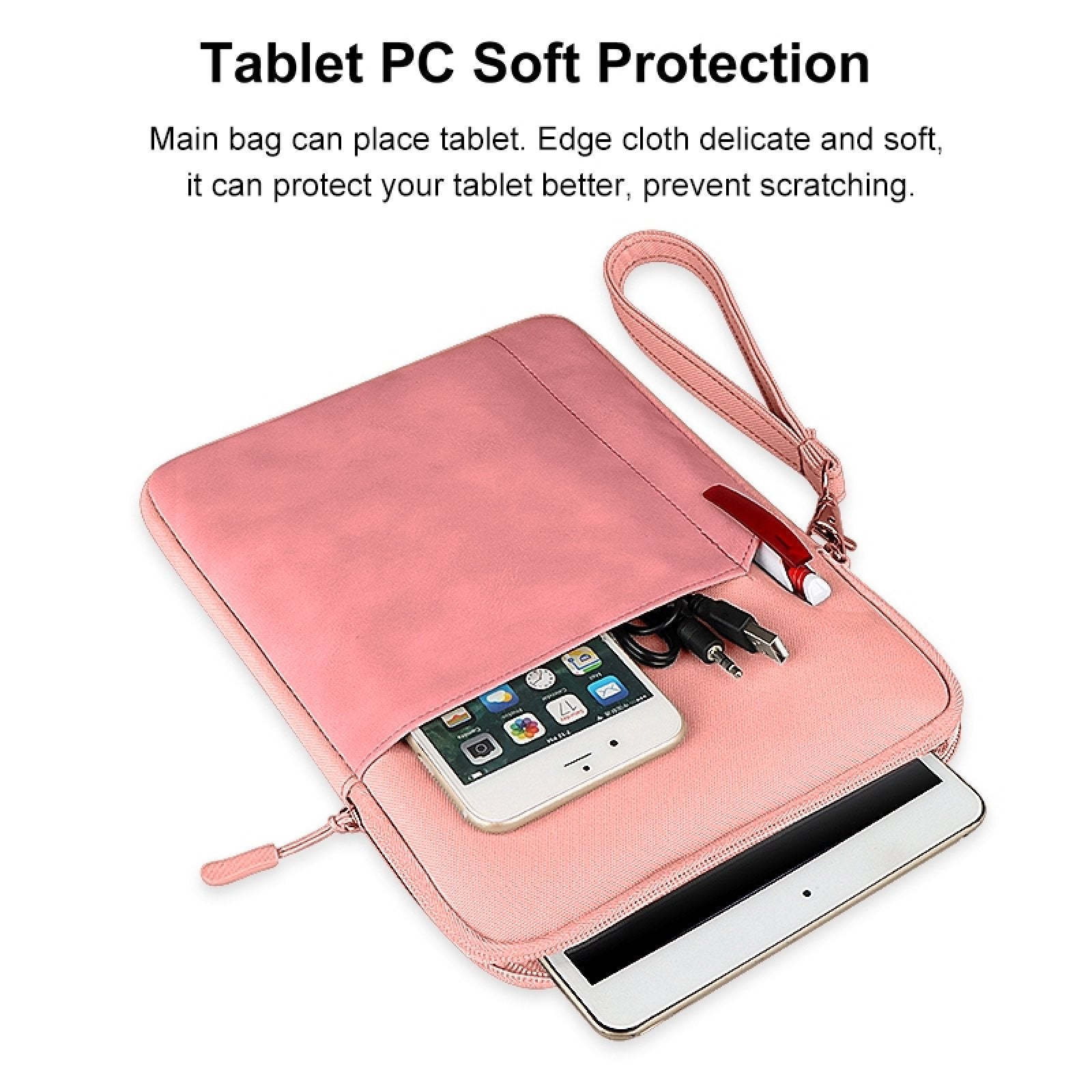 Uniqkart HWL7018 Zippered Carry Case for iPad 9.7-11 inch Scratch-Proof Tablets Sleeve Bag with Strap - Pink
