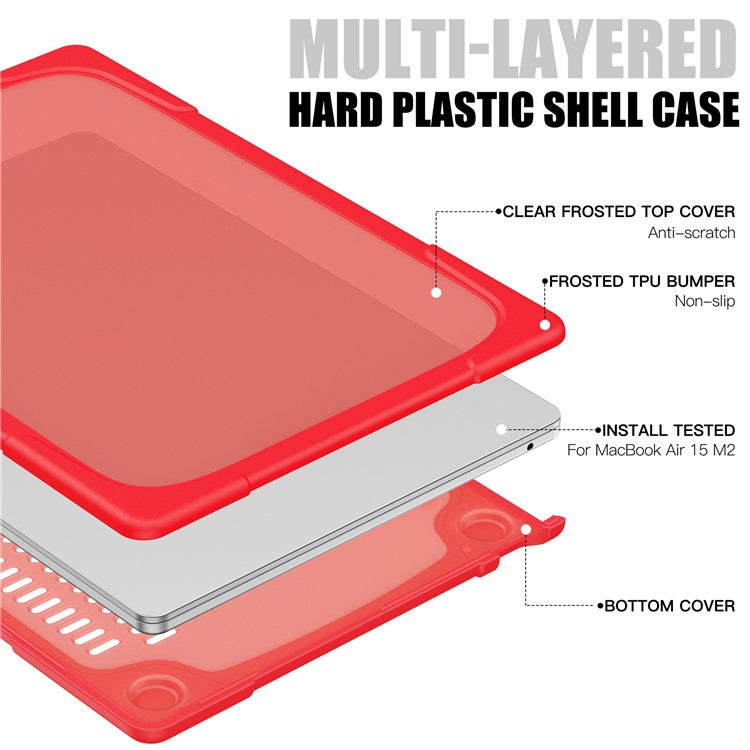 Laptop Case for Macbook Air 15 inch (2025) / (2024) A3114 M3 / (2023) M2 A2941 Stand Design Notebook Anti-Scratch Hard PC Cover - Red