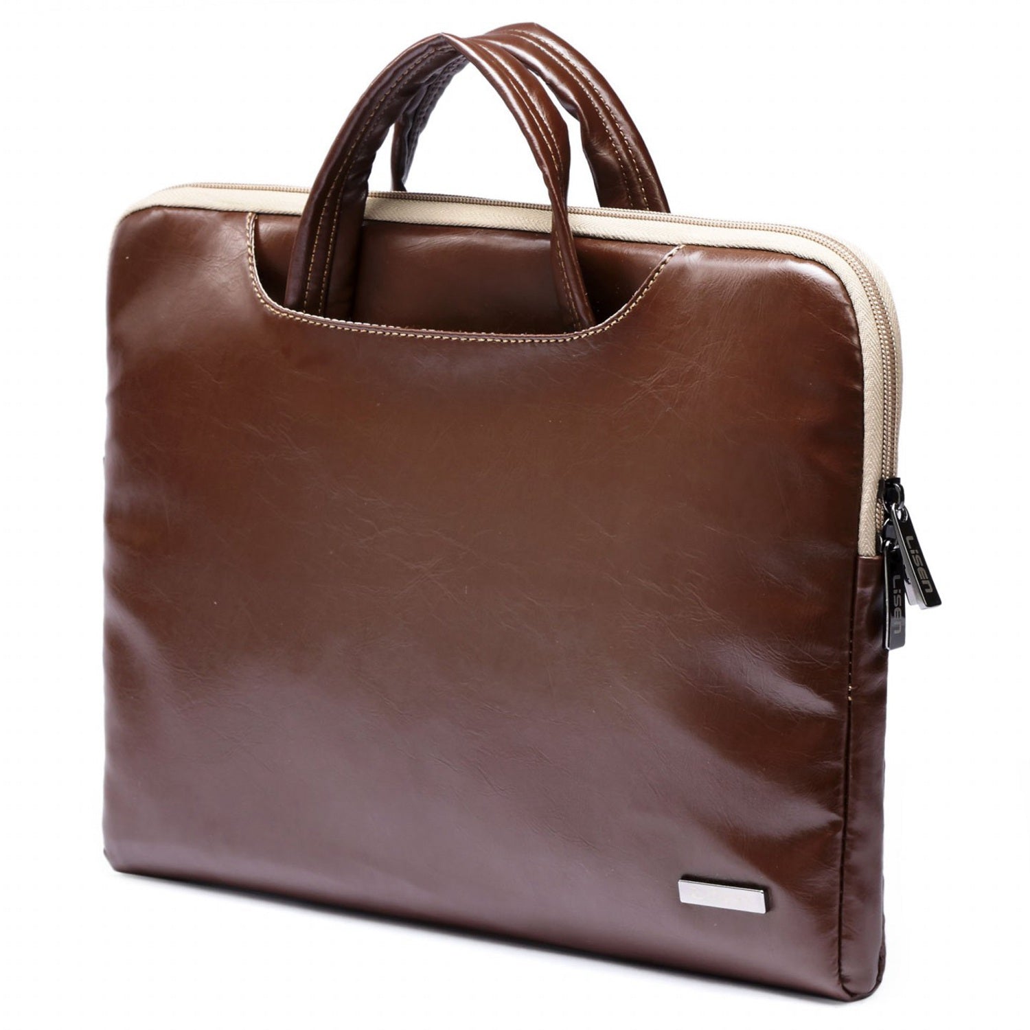 Uniqkart 11.6 Inch Laptop Bag Business Style PU Leather Laptop Sleeve Case with Handle Strap - Brown