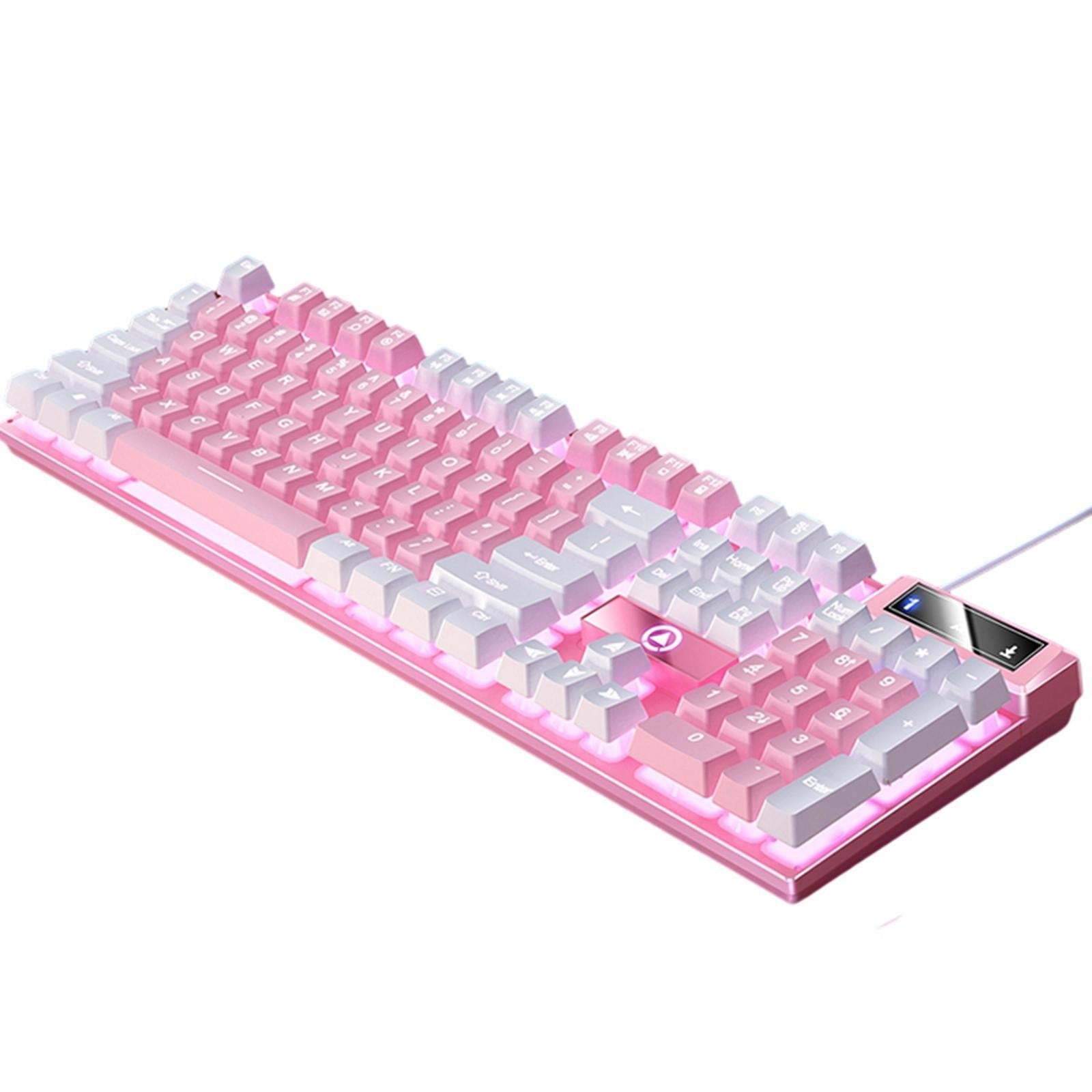 Mechanical Gaming Keyboard USB LED Lighting for Game Office Pink White