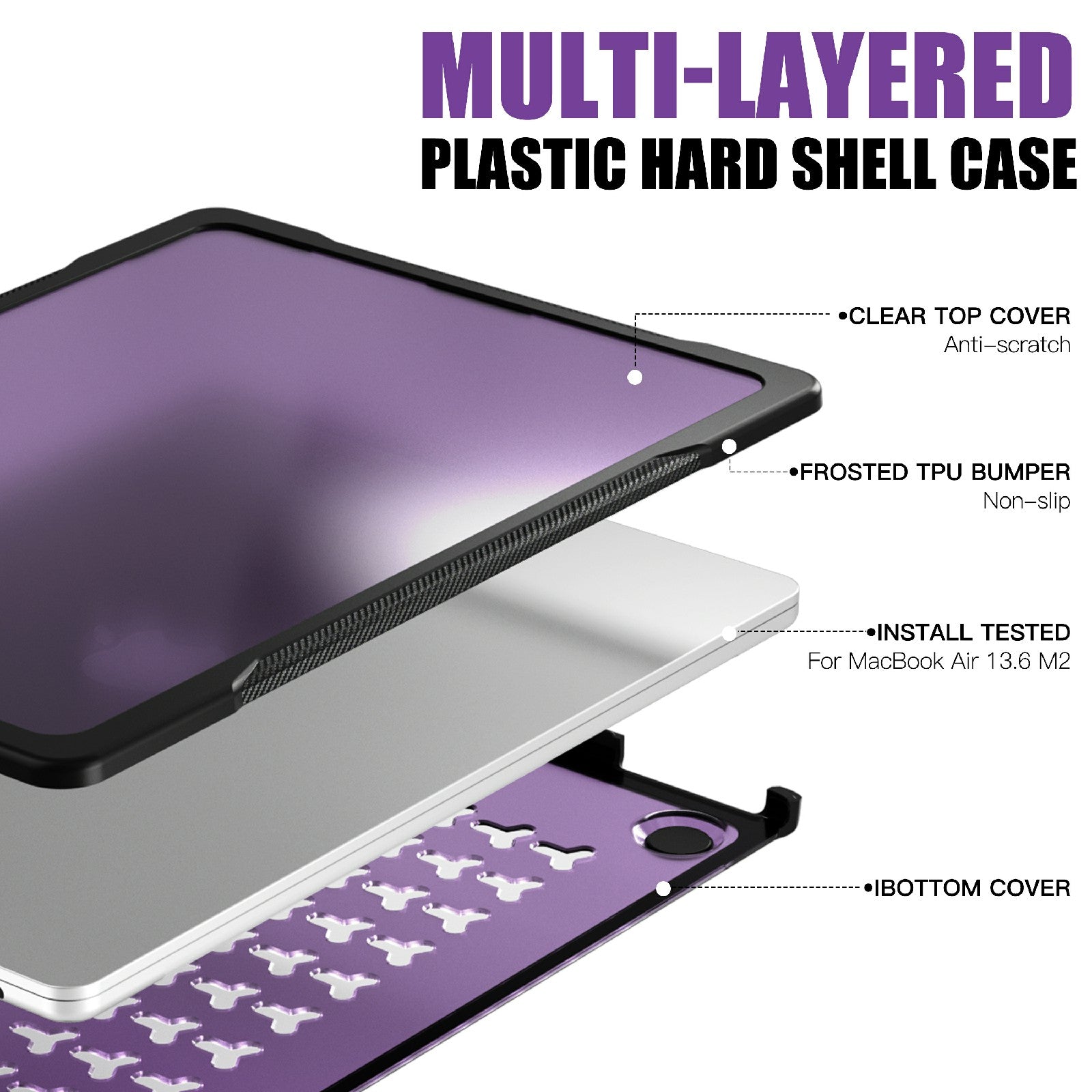 Sailor Series Laptop Case for MacBook Air 13 inch (2022) M2 A2681 Anti-scratch PC+TPU Cover - Transparent Purple