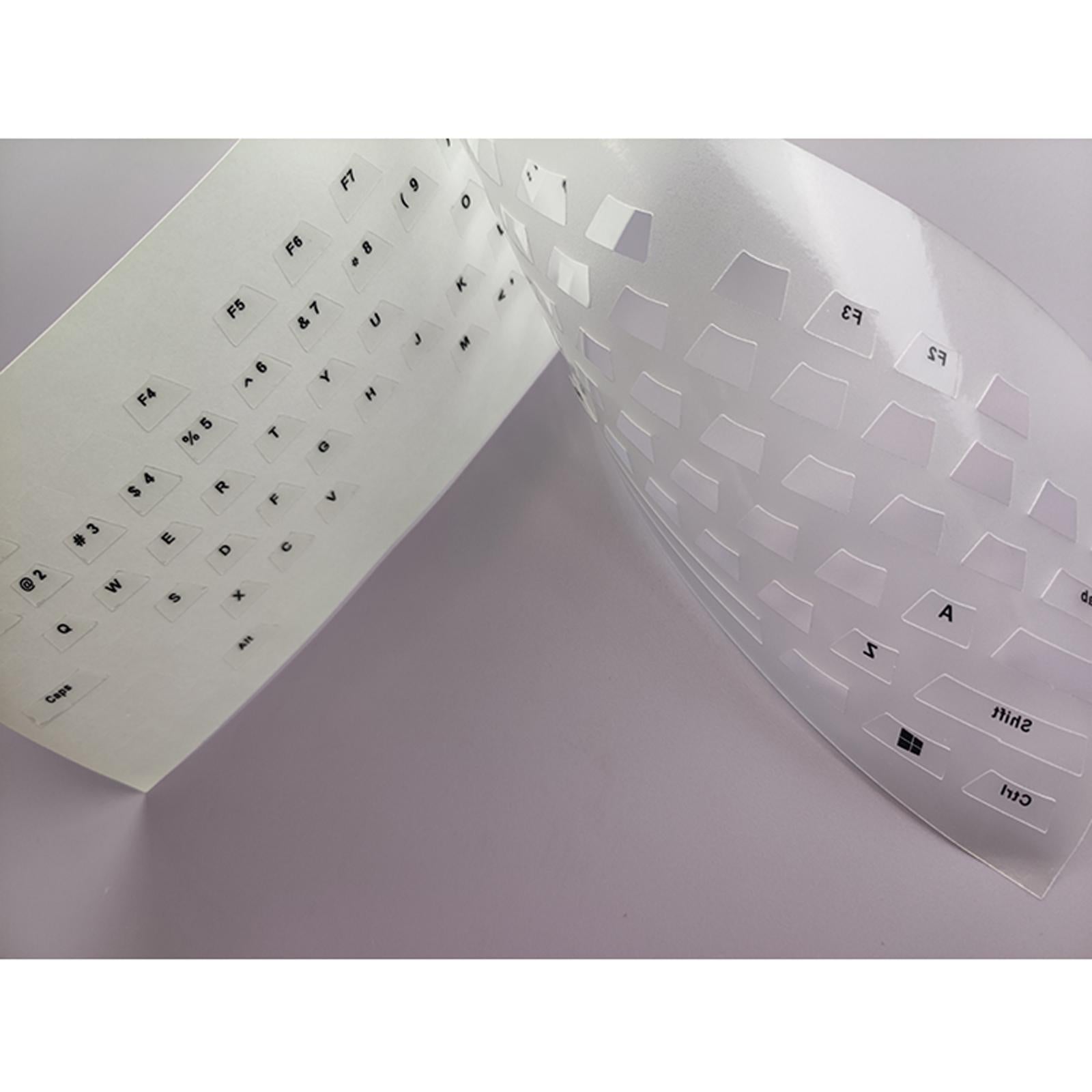 The English font is available in black and white colors. After pasting on the keyboard, only the font will be displayed, and the original color, pattern, appearance and feel of the keycap will not be affected.