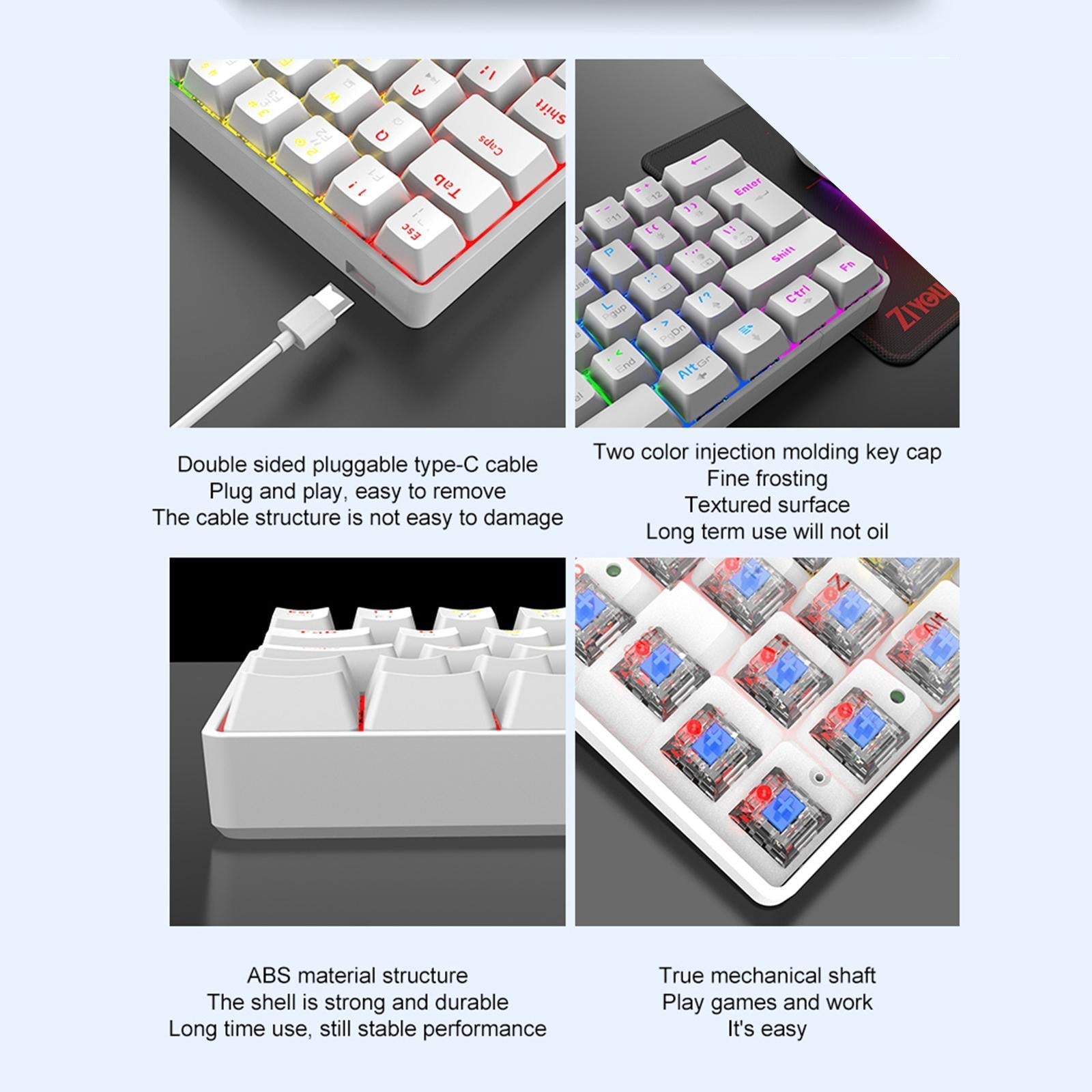 Wired 62Keys Mechanical Gaming Keyboard Backlit for Gaming Typing  white Blue switch