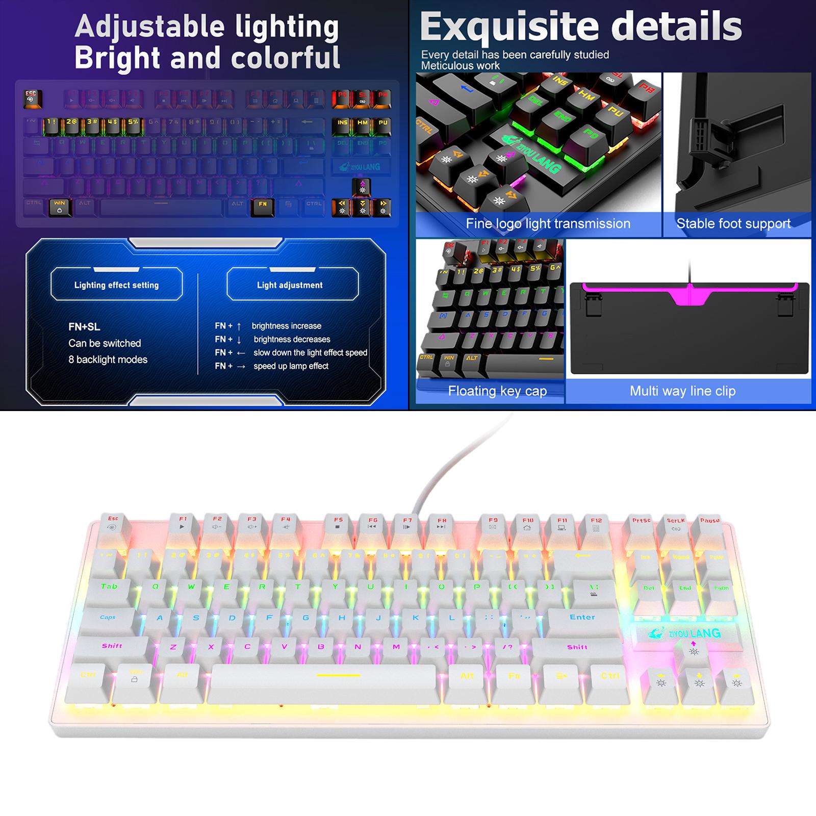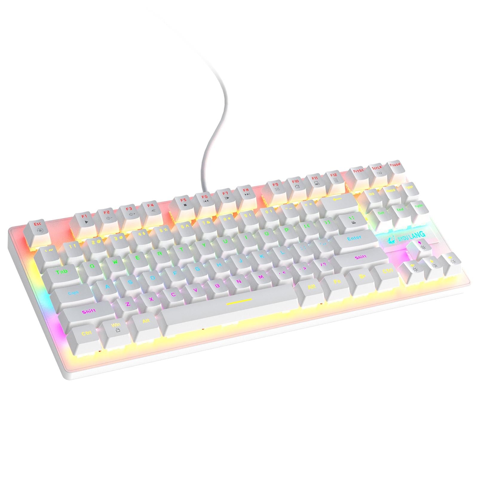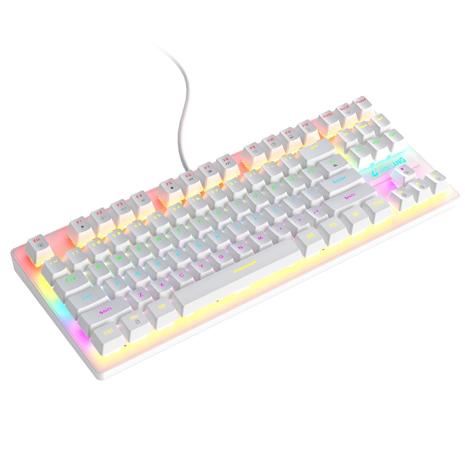 Wired Mechanical Gaming Keyboard Rainbow Backlit Windows Gamer 87 keys white