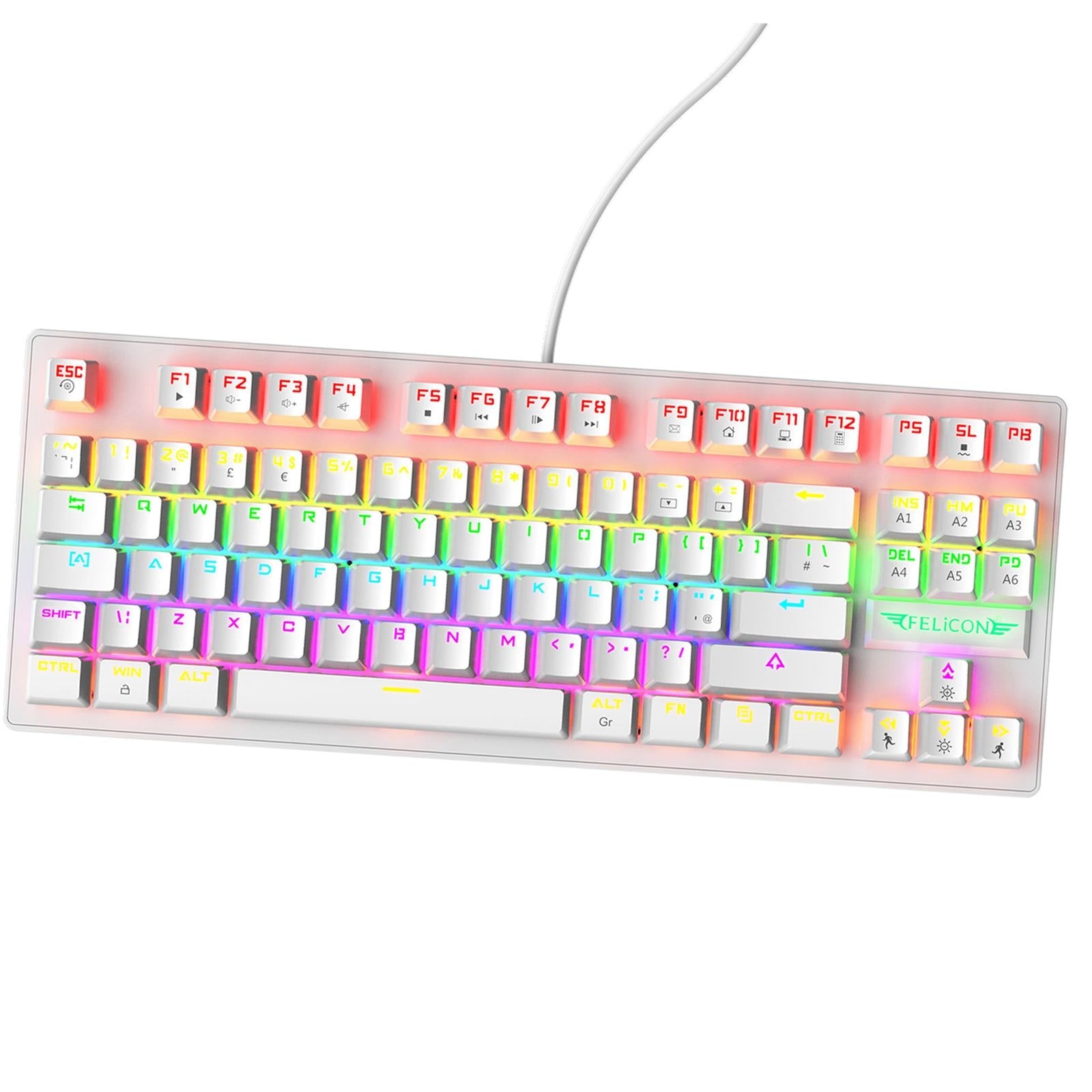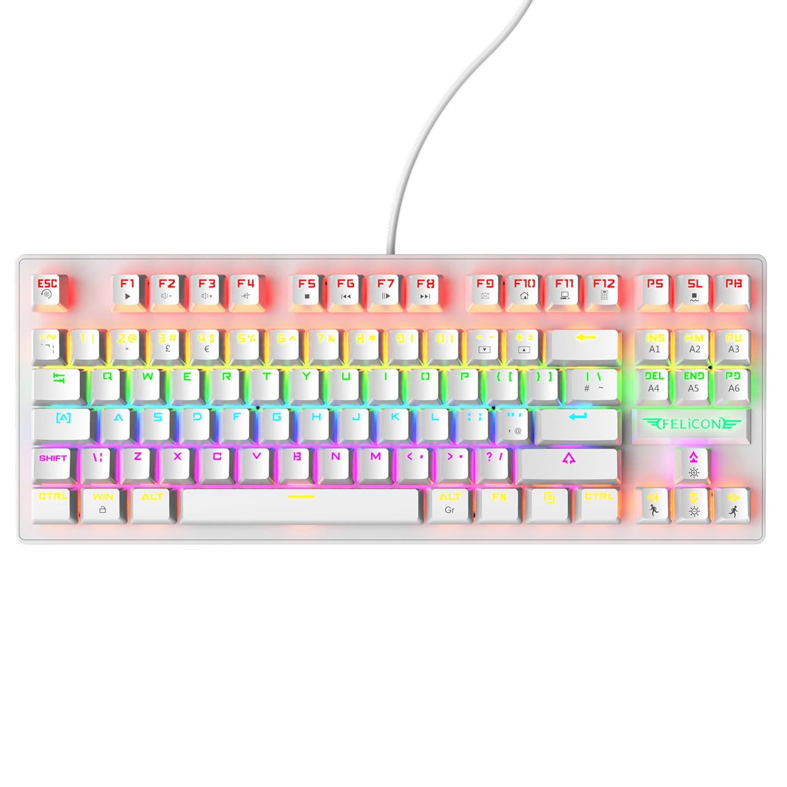 Wired Mechanical Gaming Keyboard Rainbow Backlit Windows Gamer 88 keys white