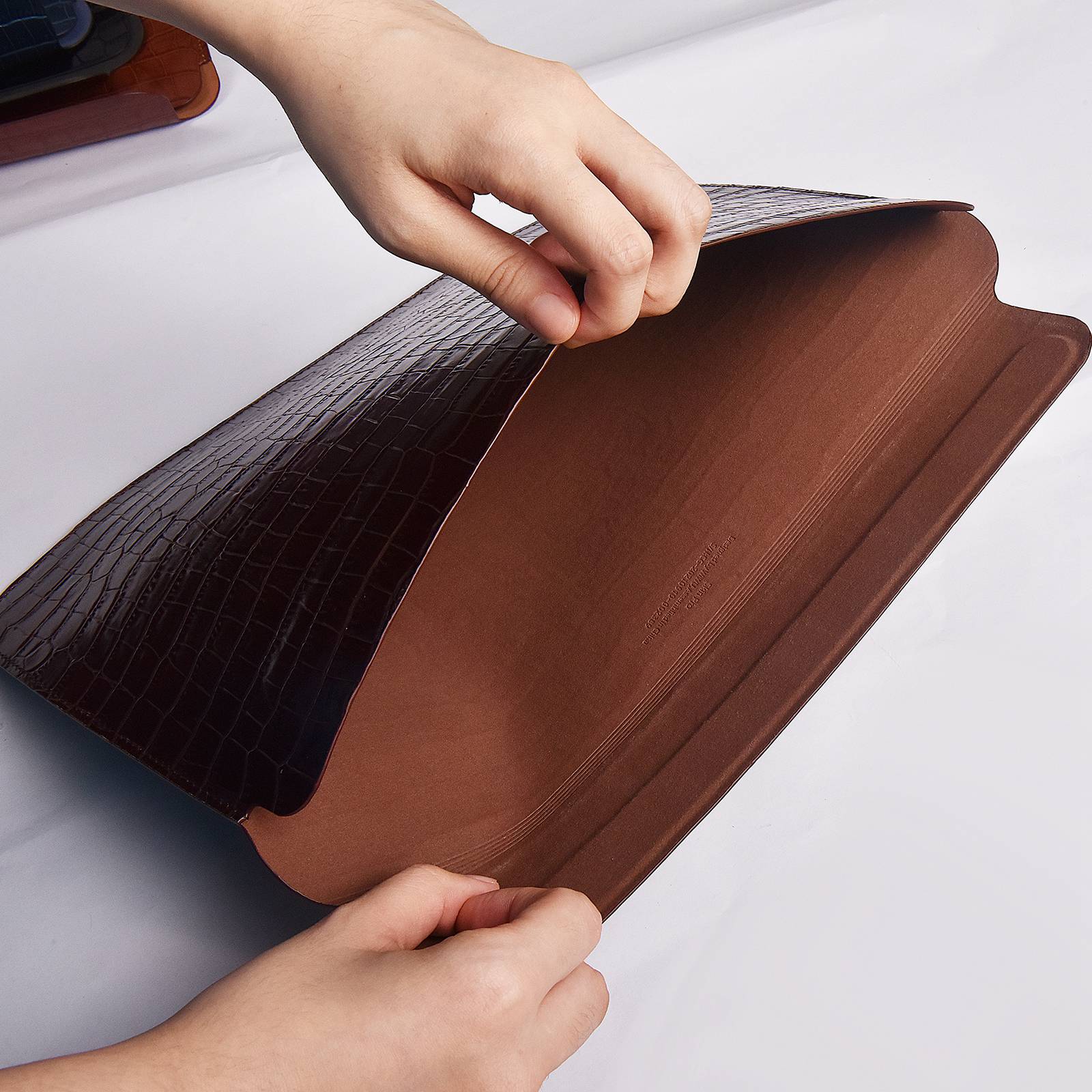Wiwu 12 inch Laptop Bag for MacBook Storage Pouch Multifunction Crocodile Texture Genuine Leather Mouse Pad Notebook Computer Sleeve - Coffee