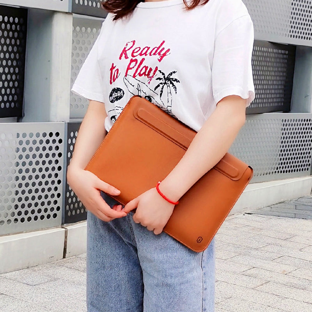 Wiwu Skin Pro Series Portable PU Leather Laptop Stand Sleeve for MacBook Pro 16 inch (2021), Smooth Surface Book Folio Cover - Brown