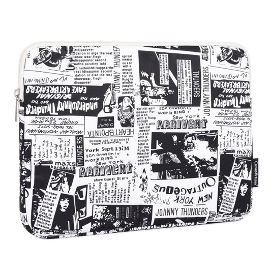 Newspaper Pattern Printing Laptop Protective Sleeve Case Notebook Carrying Cover Bag - White/13 inch