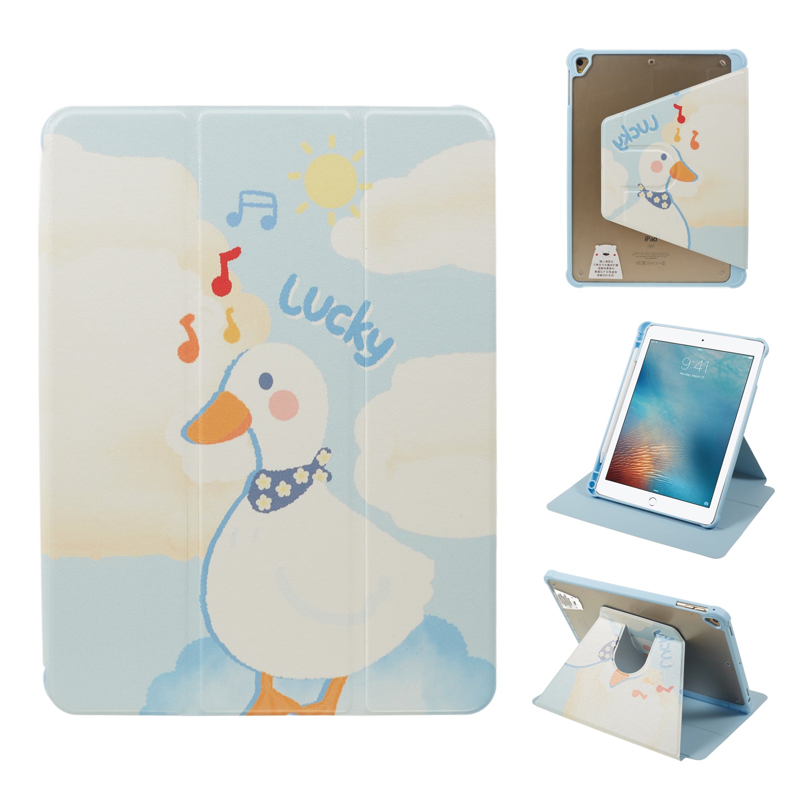for iPad 9.7-inch (2017) / (2018) / iPad Pro 9.7 inch (2016) Printed Case PU Leather Tablet Cover with Pencil Slot - Duck