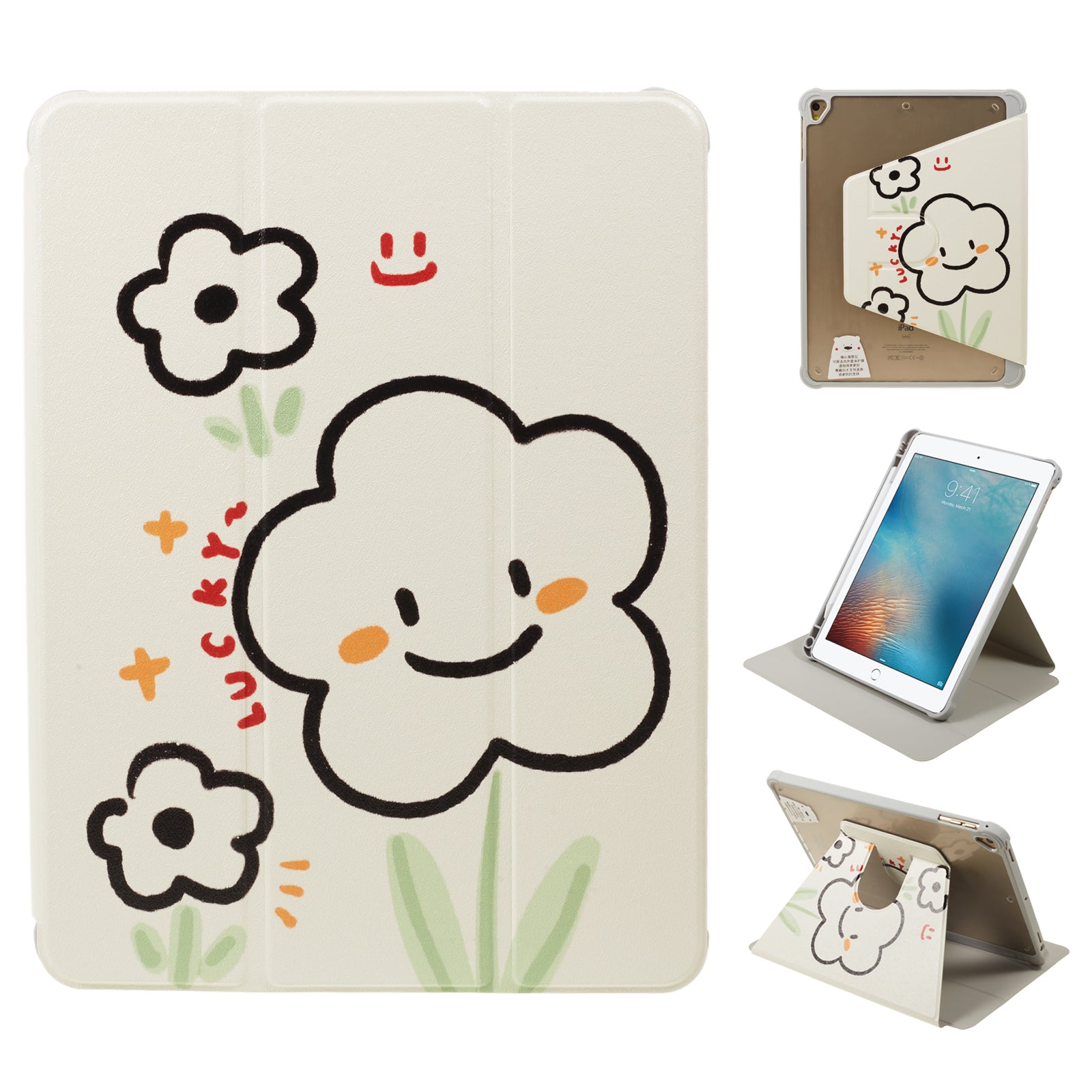 Uniqkart for iPad 9.7-inch (2017) / (2018) / iPad Pro 9.7 inch (2016) Printed Case PU Leather Tablet Cover with Pencil Slot - Smile Flower