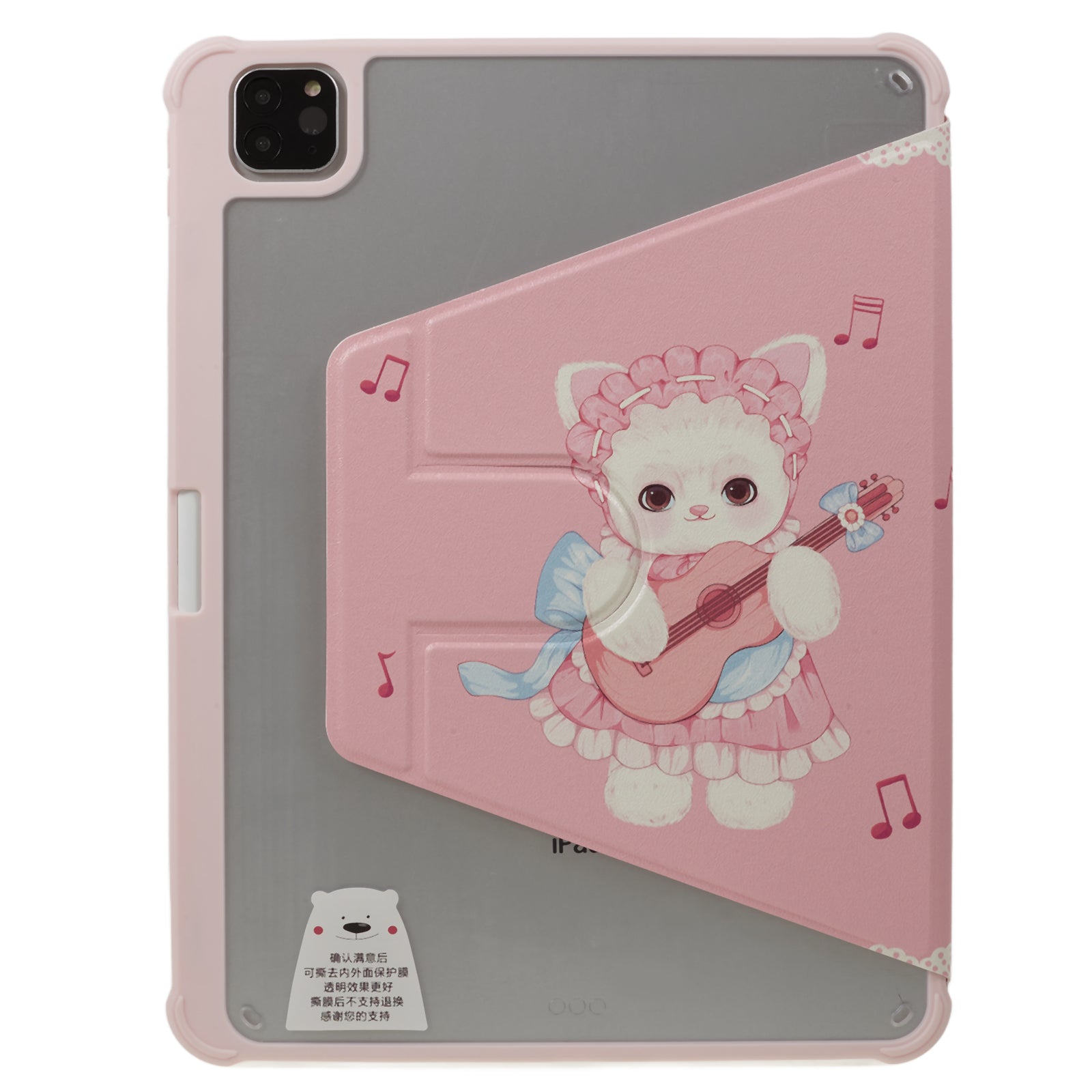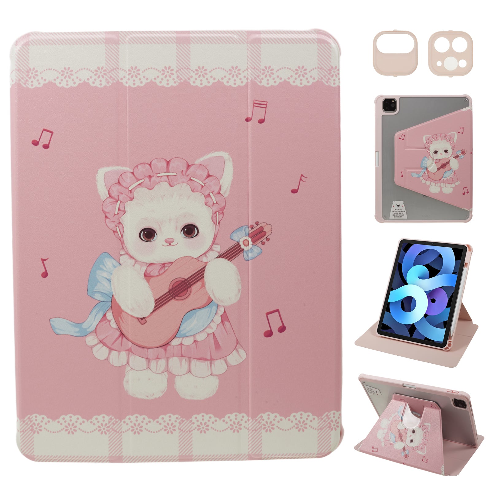 for iPad Air (2020) / (2022) / iPad Pro 11-inch (2018) / (2020) / (2021) / (2022) Tablet Case Printed PU Leather Cover with Pencil Holder - Guitar Cat