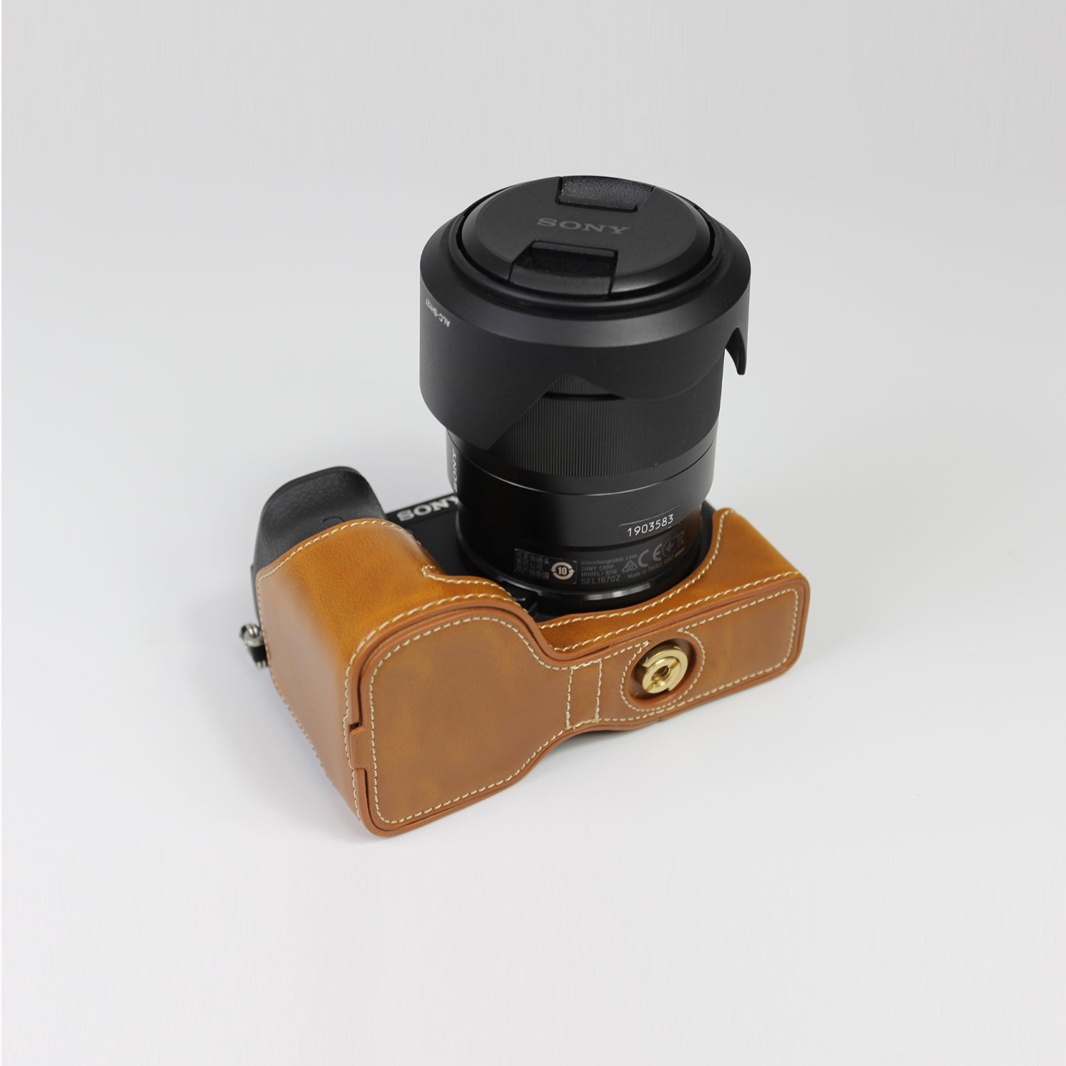 PU Leather Camera Case Bag with Shoulder Strap Lens Storage Cover for Sony Alpha A6600 - Brown