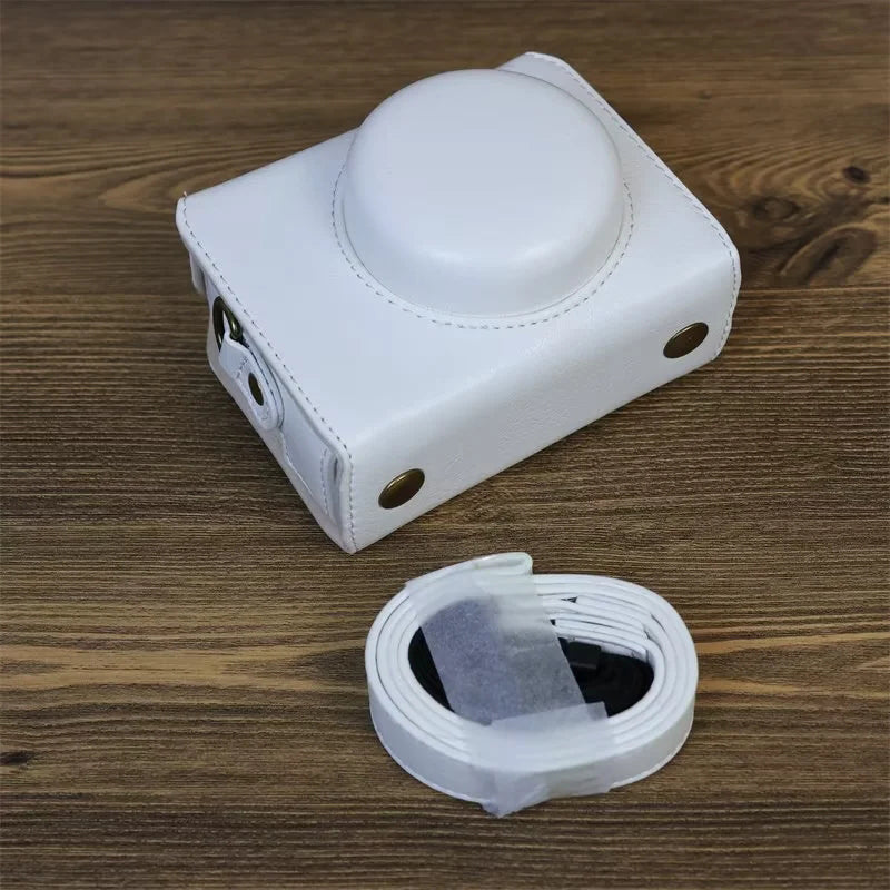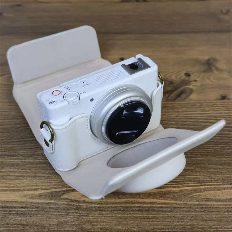 PU Leather Case for Sony ZV-1F Camera, Full Protection Camera Carrying Bag with Shoulder Strap - White