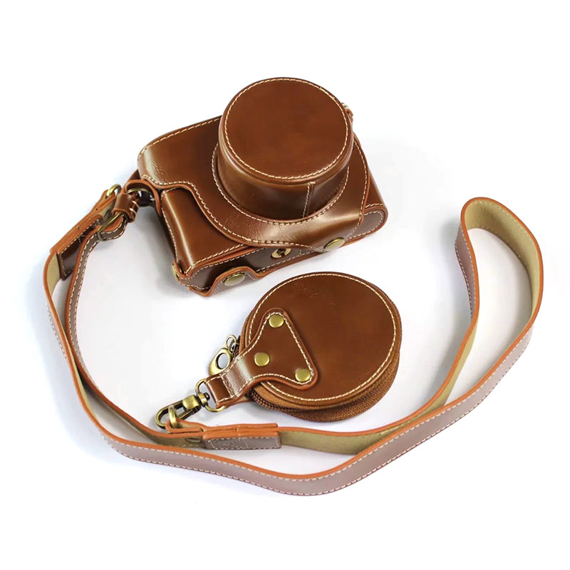 PU Leather Digital Camera Bag for Leica D-LUX 7 Battery Opening Design Protective Cover with Lens Pouch and Shoulder Strap - Brown