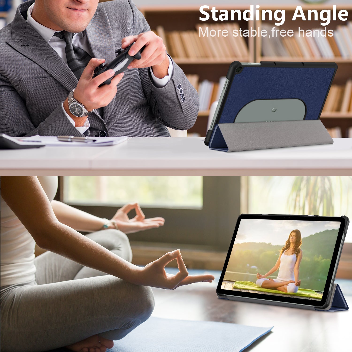 Pure Color Protective Case for Google Pixel Tablet PU Leather Anti-drop Tablet Cover with Case Tri-fold Stand - Dark Blue