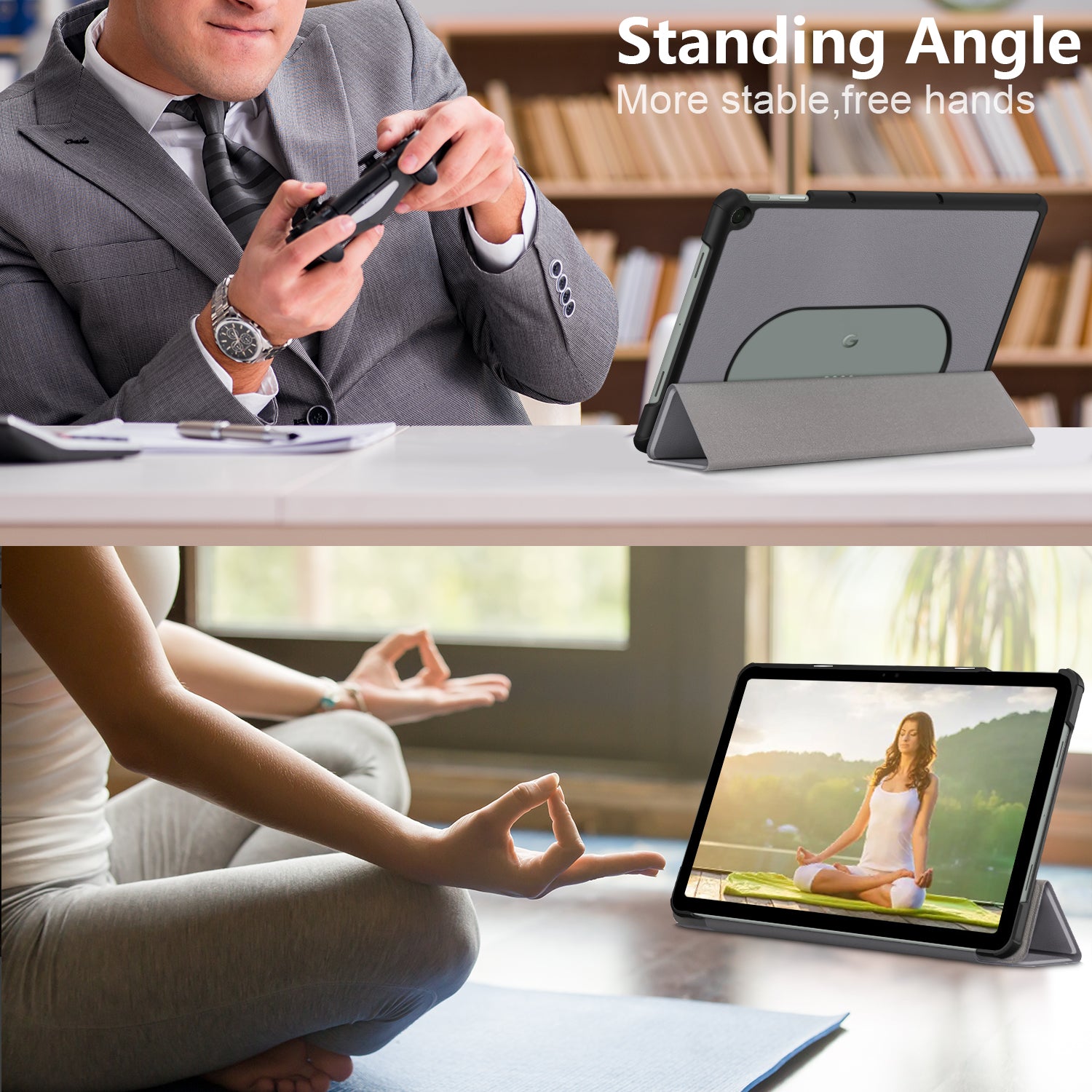 Pure Color Protective Case for Google Pixel Tablet PU Leather Anti-drop Tablet Cover with Case Tri-fold Stand - Grey