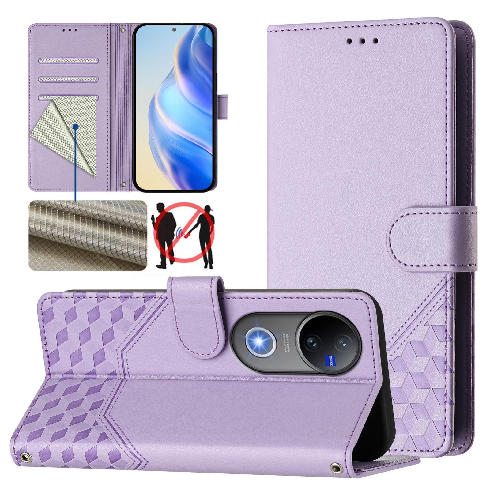 For vivo V50 5G Global Honeycomb Embossing RFID Leather Phone Case(Light Purple)