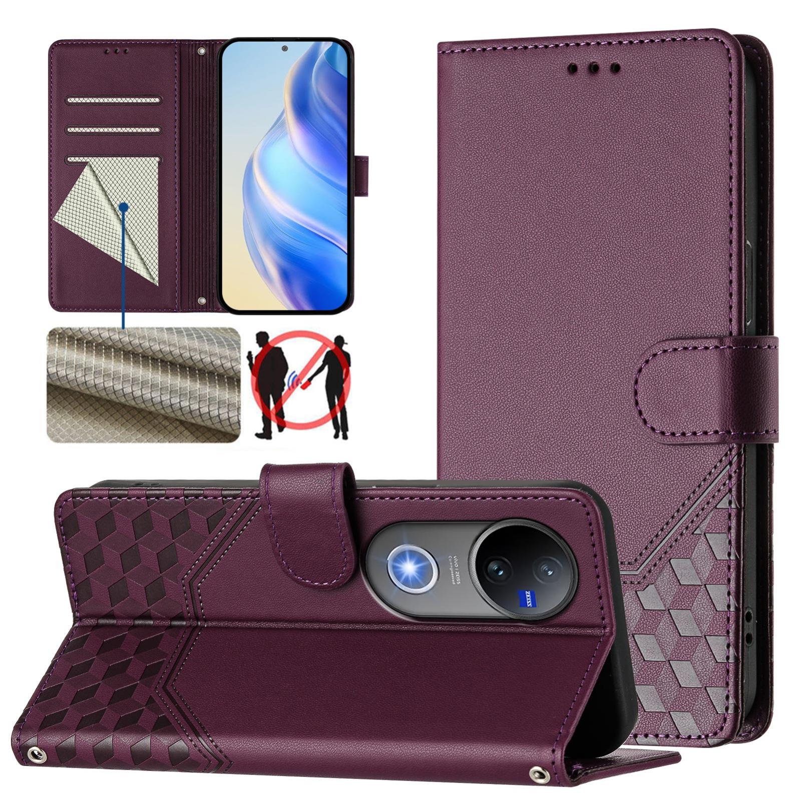 For vivo V50 5G Global Honeycomb Embossing RFID Leather Phone Case(Violet)