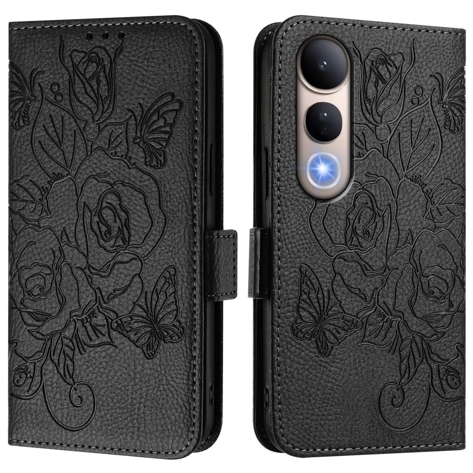 For vivo V50 Lite 5G Embossed Rose RFID Anti-theft Leather Phone Case(Black)