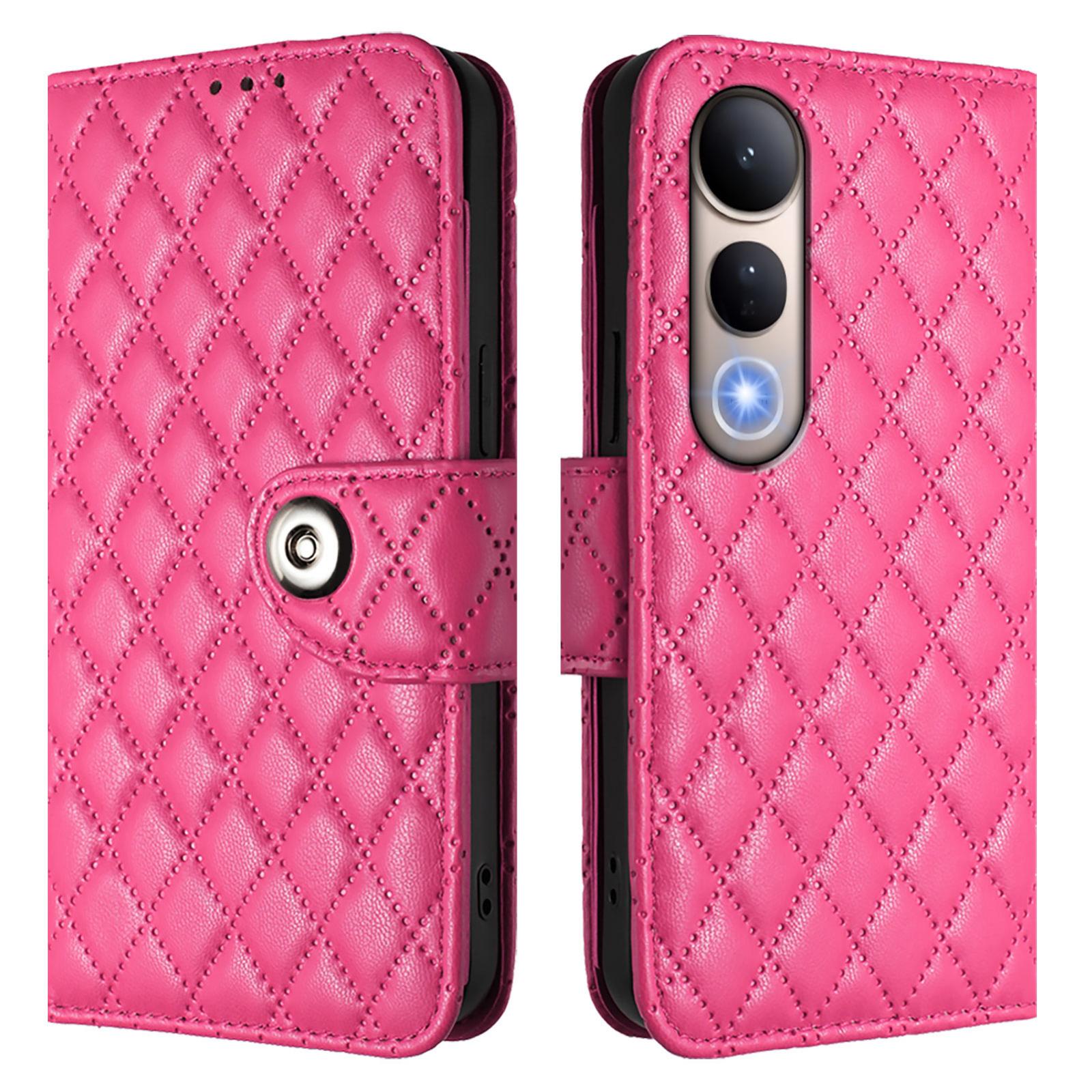 For vivo V50 Lite 5G Rhombic Texture Flip Leather Phone Case with Lanyard(Rose Red)