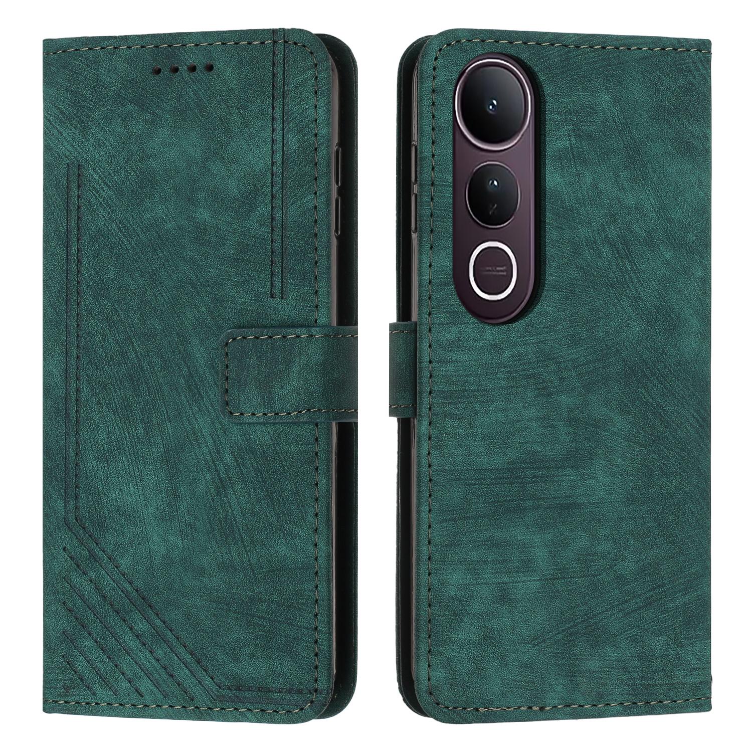 For vivo V50 Lite Skin Feel Stripe Pattern Leather Phone Case with Lanyard(Green)