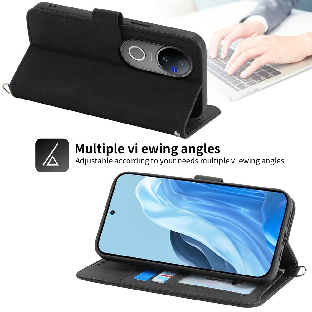 For vivo V50 Skin Feel Flowers Embossed Wallet Leather Phone Case(Black)