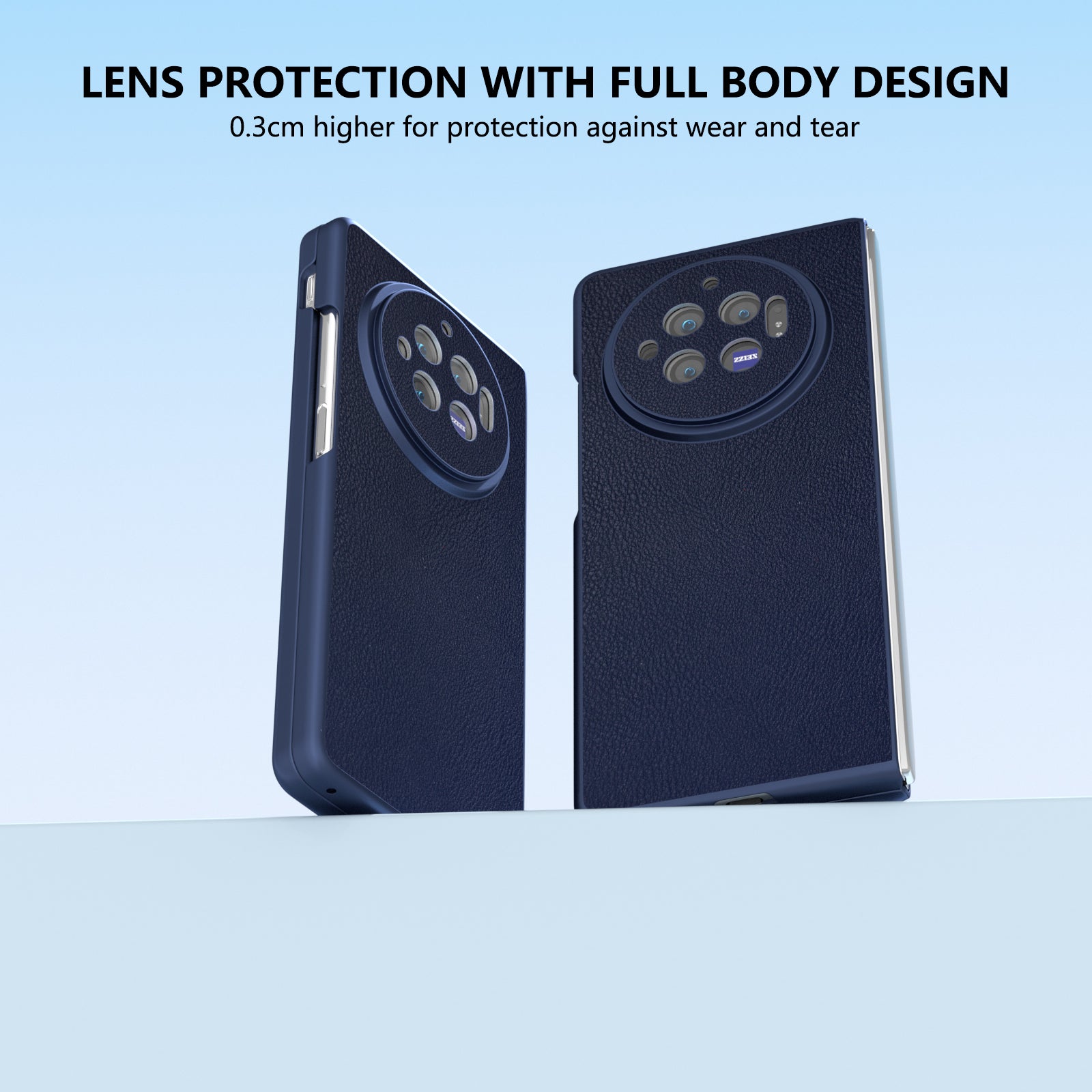 For vivo X Fold3 Case PU Leather Coated Hard PC Folding Phone Cover - Dark Blue