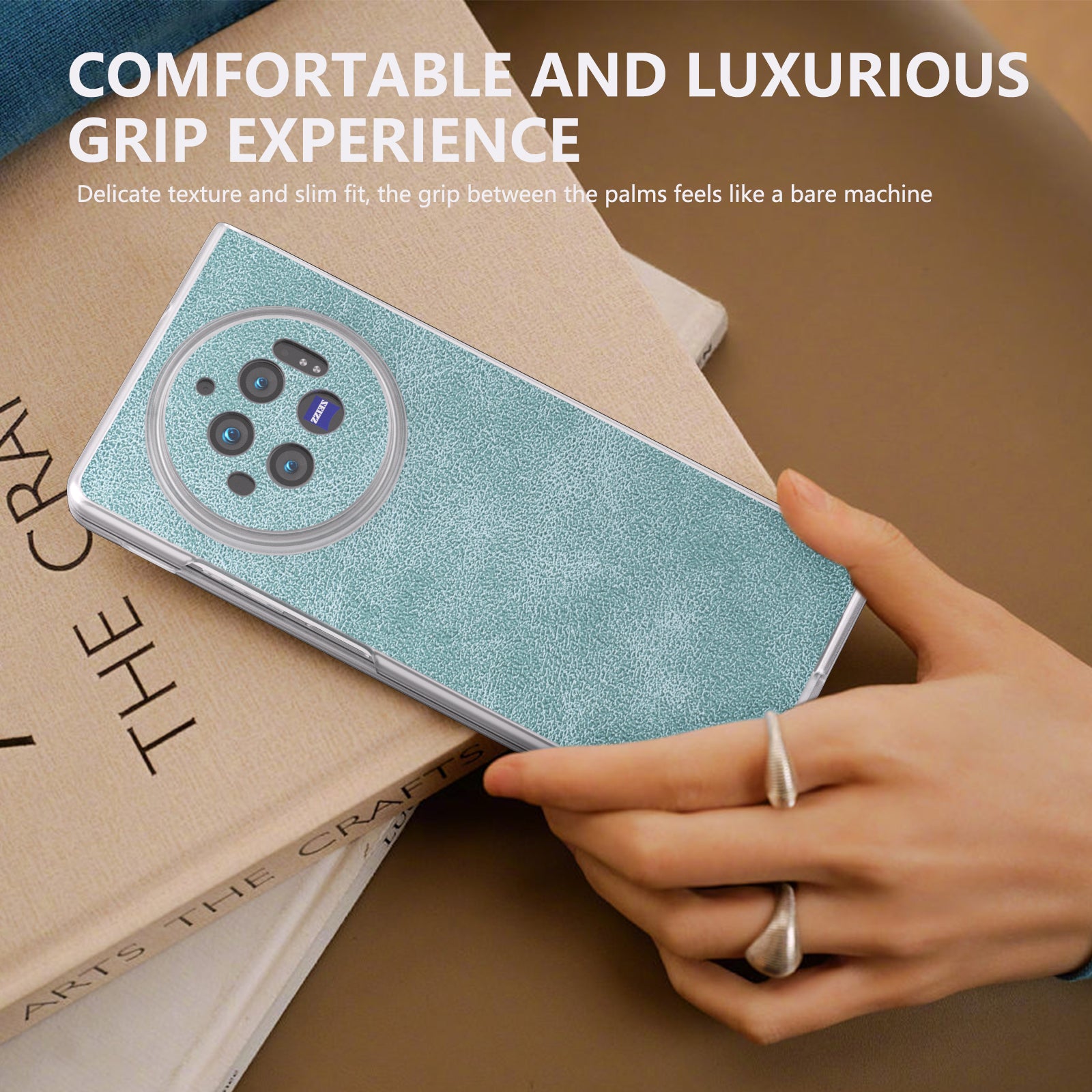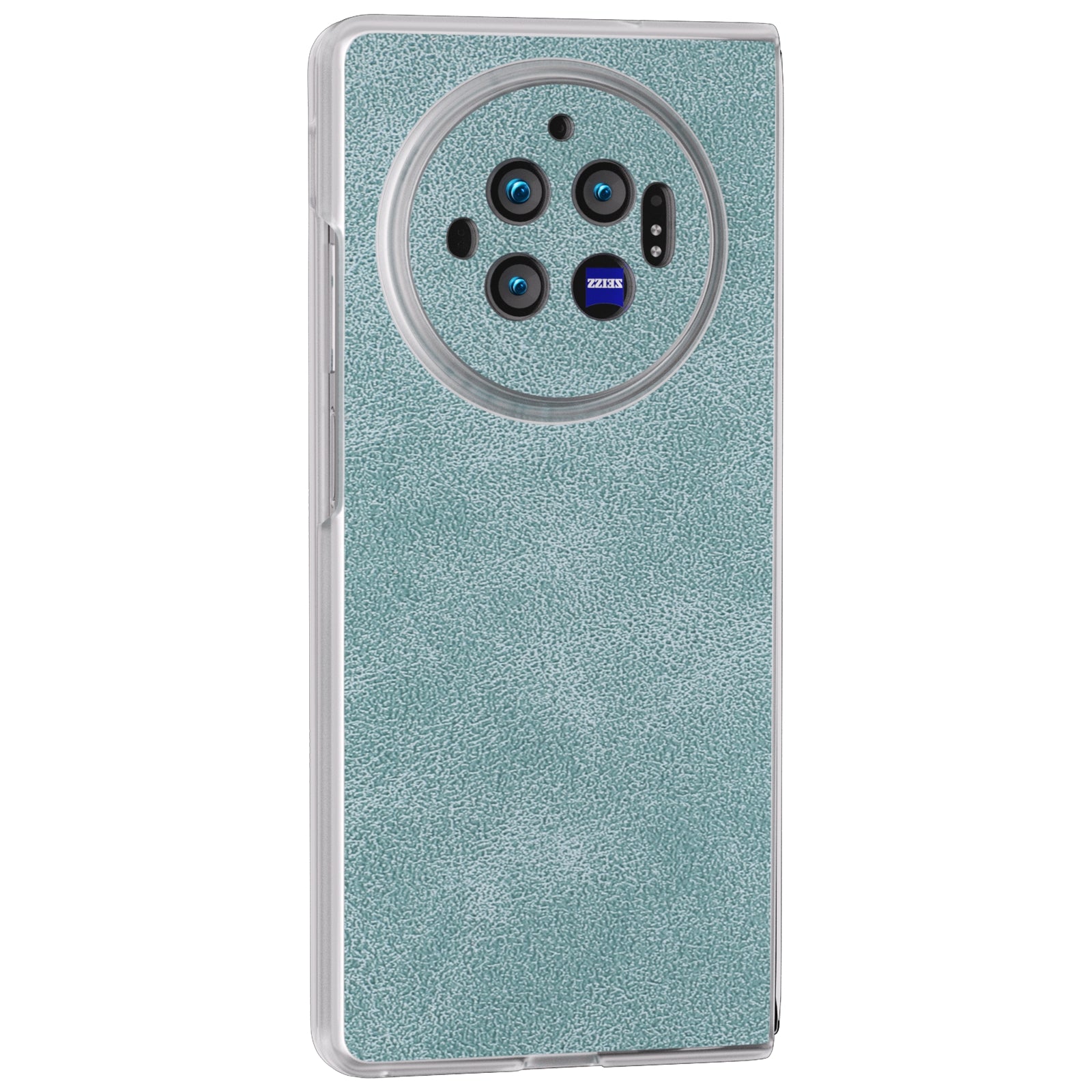 For vivo X Fold3 Case PU Leather Coated PC Matte Edge Anti-Fingerprint Phone Cover - Baby Blue