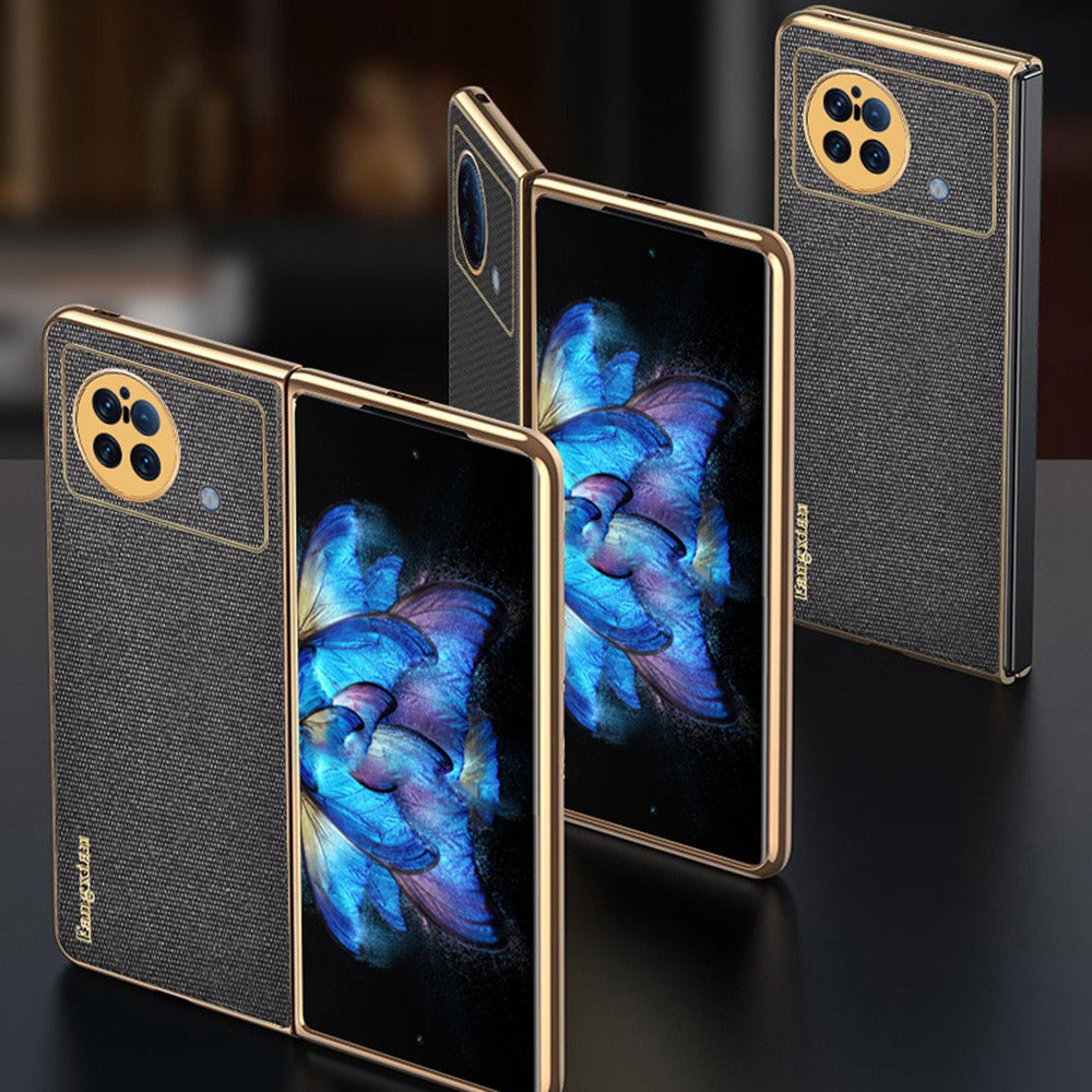Sea Sand Textured Phone Case for vivo X Fold, PU Leather Coated Hard PC Stylish Anti-scratch Protective Shell - Black