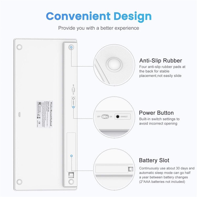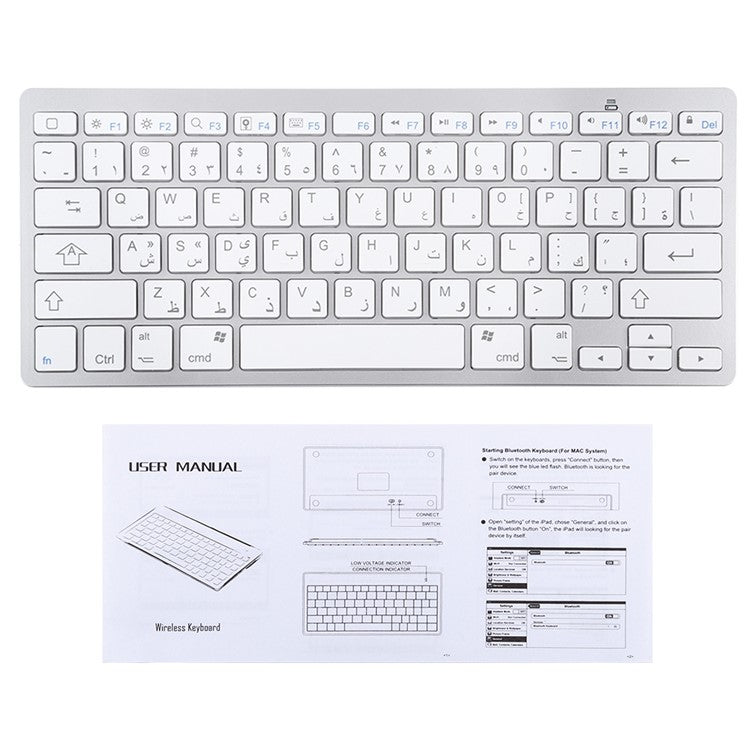 Ultra-Slim Wireless Bluetooth Keyboard (Arabic Language) for Android Windows iOS - Silver