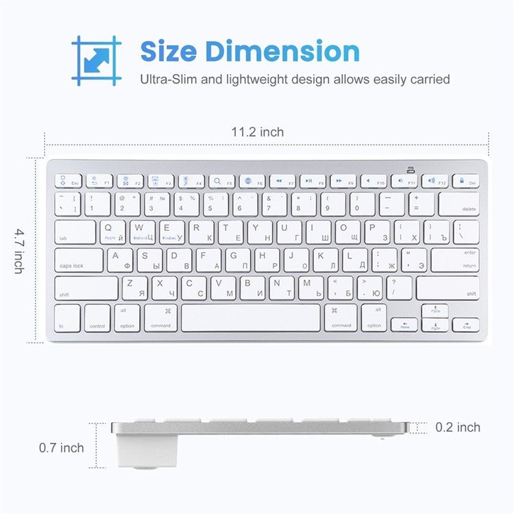 Ultra-Slim Wireless Bluetooth Keyboard (Russian Language) for Android Windows iOS - Silver