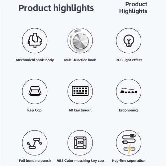 Y-FRUITFUL K78 Mechanical Keyboard 78 Keys RGB Backlit Wired Gaming Office Computer Keyboard - White