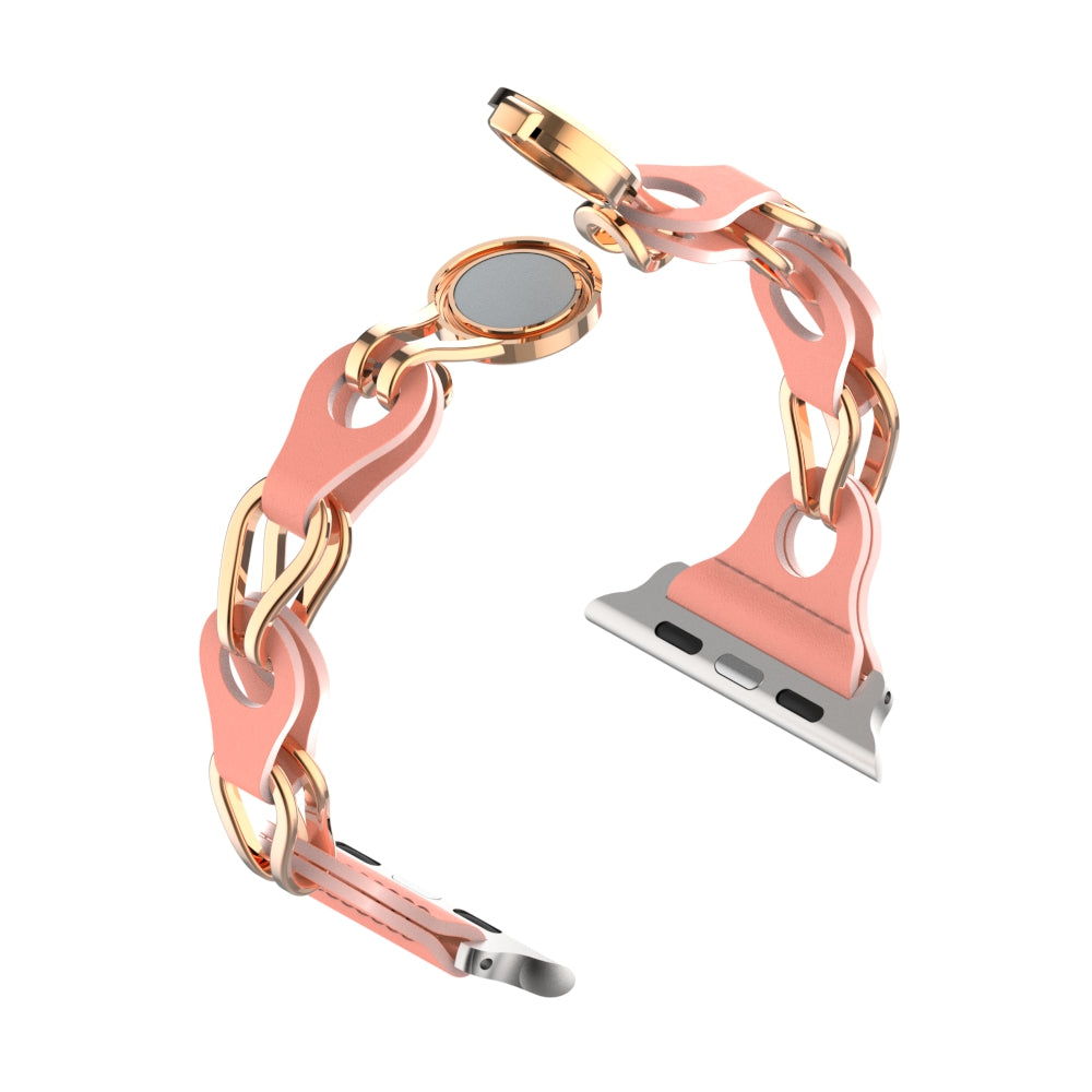 Uniqkart for Apple Watch Series 8 7 41mm  /  6 5 4 SE (2022) SE 40mm  /  3 2 1 38mm Stainless Steel+Leather Chain Strap Magnetic Buckle Watch Band - Walnut Red